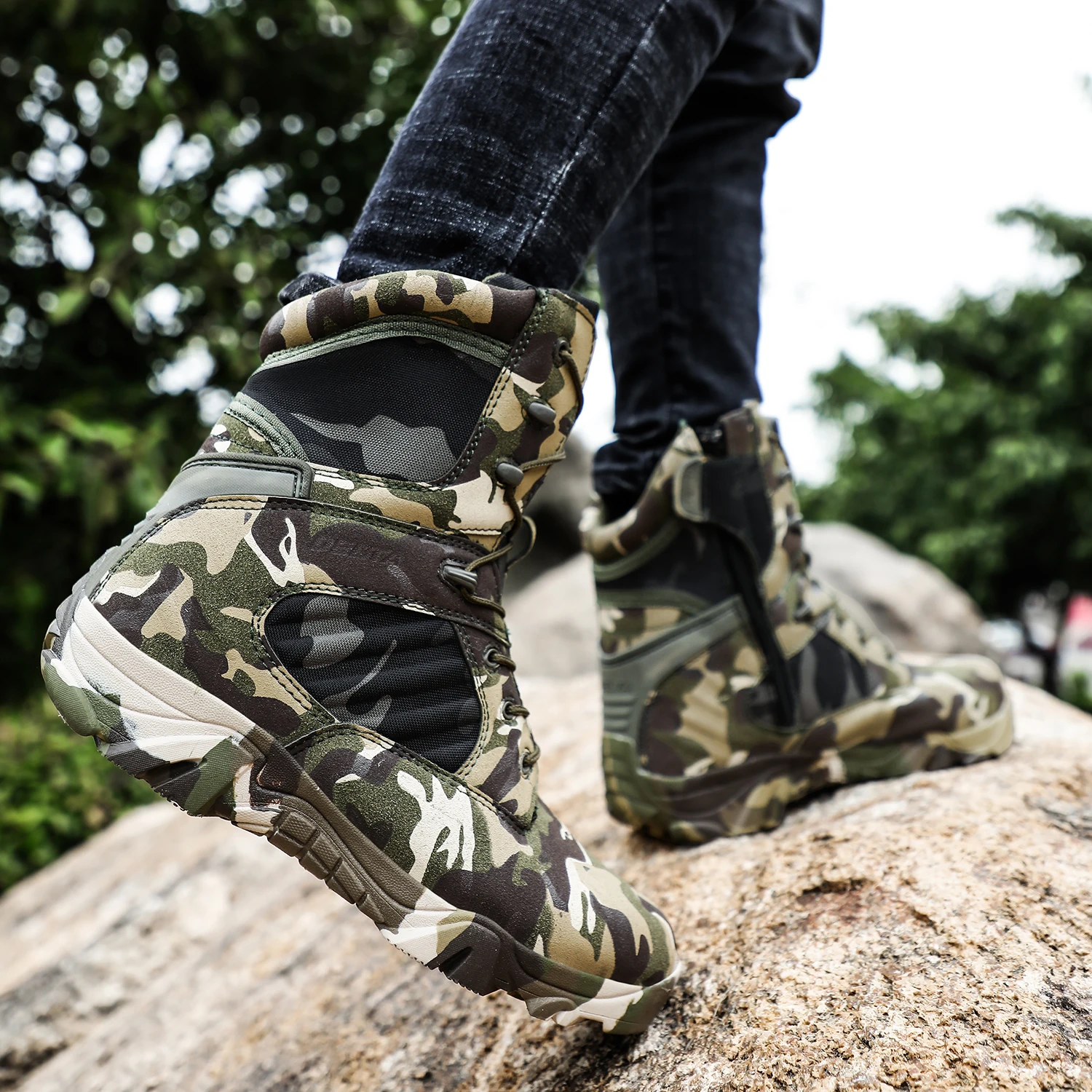 Походные уличные ботинки для мужчин, дышащие кожаные военные тактические ботинки на молнии, мужские походные треккинговые кроссовки