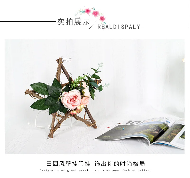 Венок из искусственных цветов, висячая дверь для свадьбы, дома, сада, вечерние украшения, пентаграмма, венок с розами