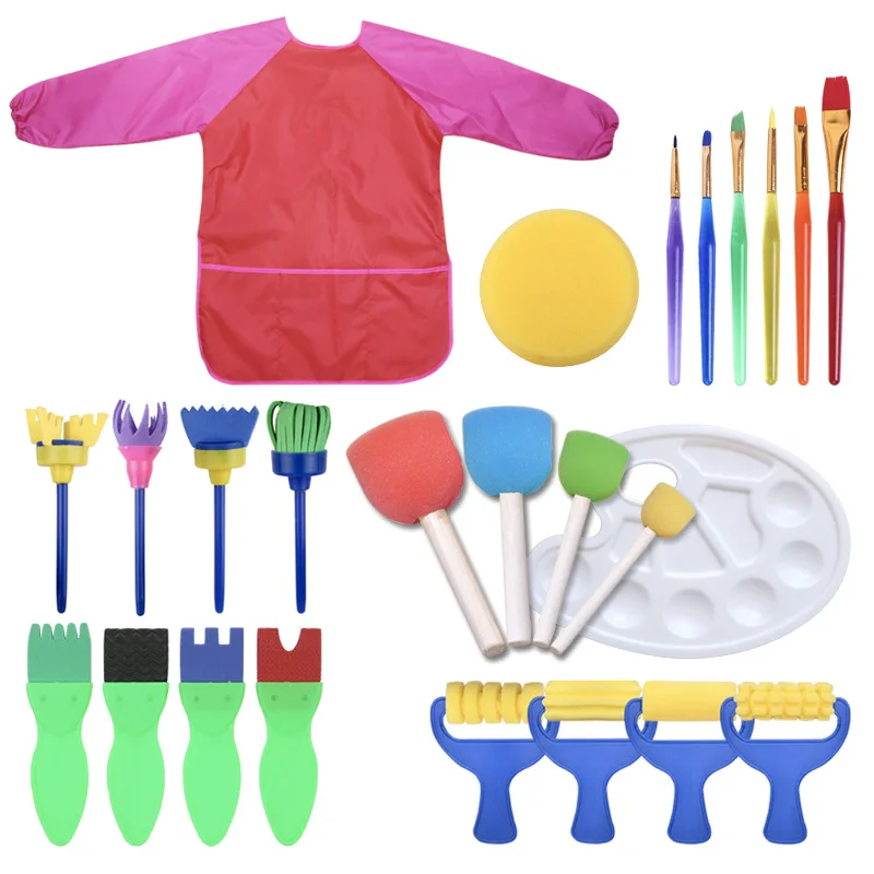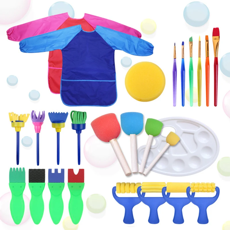 25 шт./компл. детская художественная живопись, губка, кисть, акварельная ручка, метла, граффити, печать, палитра, набор одежды, детские наборы игрушек для рисования