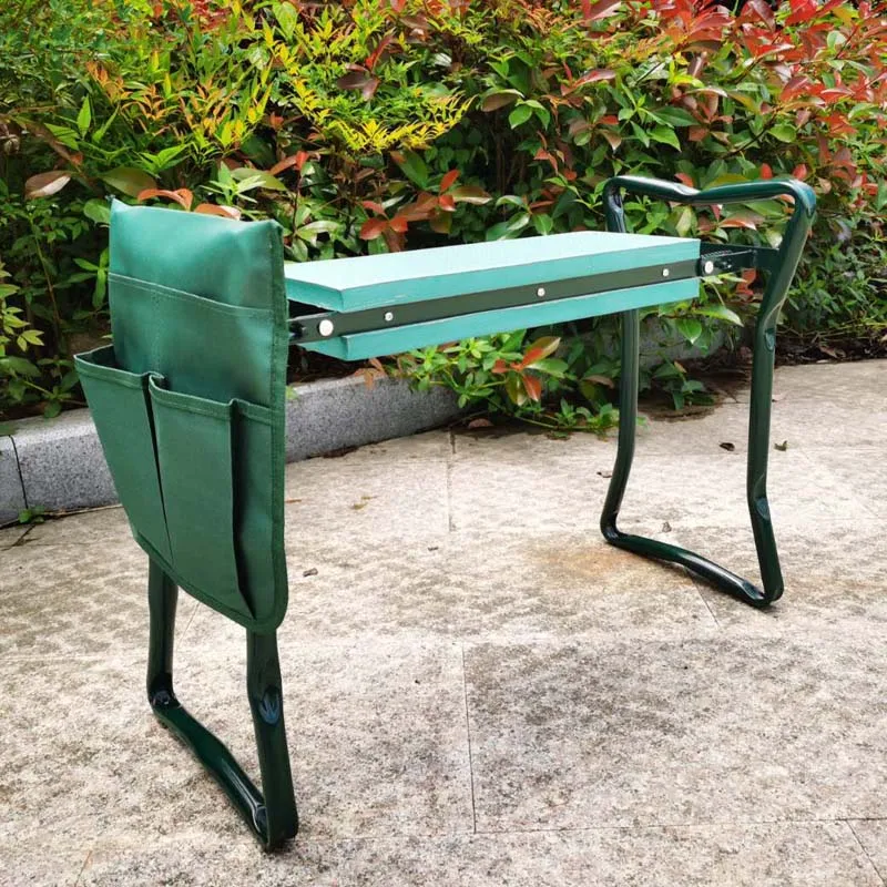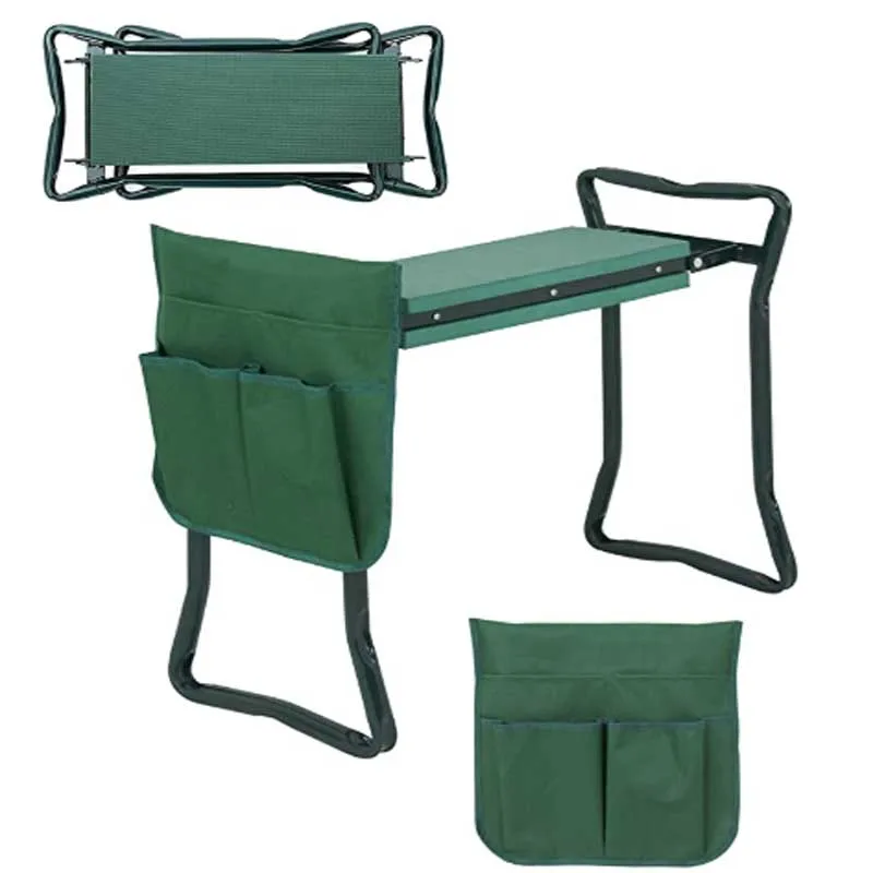 SPECIAL FOR GARDENING: Elevated kneeling pad making your gardening easy and protects your knees, clothes from dirt & grass stains VERSATILE DESIGN: The kneeler can be flipped over to convert it into a comfortable seat that can relax and enjoy your masterpiece for a while when tired from gardening activities,The side rails make getting up and down easy by providing support to your arms. FOLDS EASILY: Comes assembled, and opens and closes in a quick snap so you can get down to your gardening at any moment.The folded kneeler occupies very little space and can be carried even in your car for an outing. STURDY AND LIGHTWEIGHT: The kneeler cum seat is made up of all superior quality steel frame and EVA. Added toughness for ensure a long life and functional effectiveness and take any garden mishap. 100% RISK-FREE: Comes with a incredible removable garden tool bag, with three pockets, that keep your tools easily accessible to you for your convenience! 100% risk-free satisfaction guarantee make your purchase stress-free