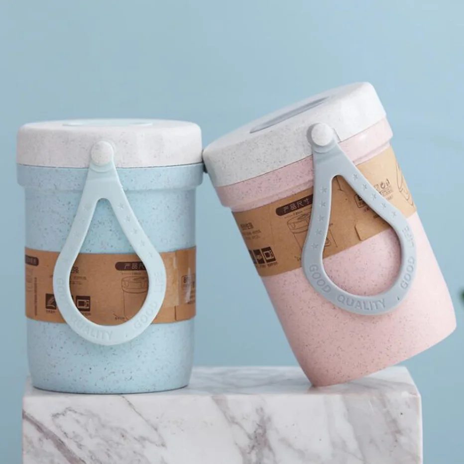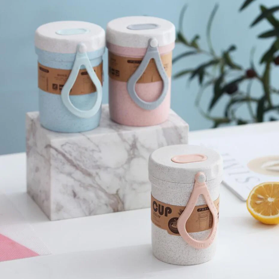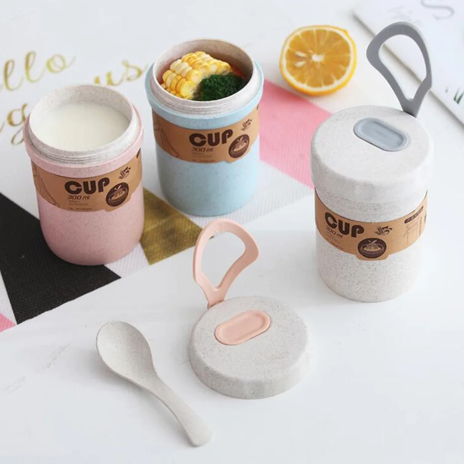 Круглый Форма Пластик Суп Контейнер экологически чистые пшеничной соломы герметичные суп bottlke с ручкой мыть в посудомоечной машине, Еда чашки
