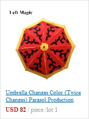 A Red umbrella is changed into a Yellow one rapidly without any shelter.perfect effect! It is easy to opperate and you can learn it in one minute. The size of the surface of the umbrella is 88 centimeter and the overall length is 54 centimeterSERVICE
