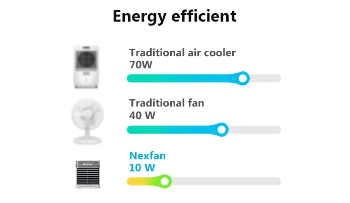 Многофункциональный NexFan не только обеспечивает вас прохладным воздухом, но также обеспечивает охлаждение, увлажнение и очистку воздуха. Он также может автоматически очистить свой внутренний резервуар. Для быстрого охлаждения NexFan может обеспечить ветерок охлаждения 5 ° C / 9 ° F мгновенно, вы будете чувствовать холодный ветер в течение нескольких секунд. Экономия энергии Зарядка с 10000 мАч power bank может поддерживать в 12-часовом формате срок службы, особенно в чехол 500 мл полный воды. Вам никогда не придется беспокоиться о тревожных дневных поездках на свежем воздухе. Портативный Размер nexfan составляет всего 14,4 × 16,1 × 15,9 см, которая очень легко носить с собой и может быть легко поместить в чемодан. Он короче сумочки и весит менее 1 кг. Тихий Новая конструкция блока снижения уровня шума NexFan удерживает уровень шума ниже 68 дБ, гарантируя, что вы сможете получить спокойное и удобное личное пространство. Съемный Фильтры NexFan снимаются и моются. При нормальном использовании, вам нужно только чистить один раз в два месяца.