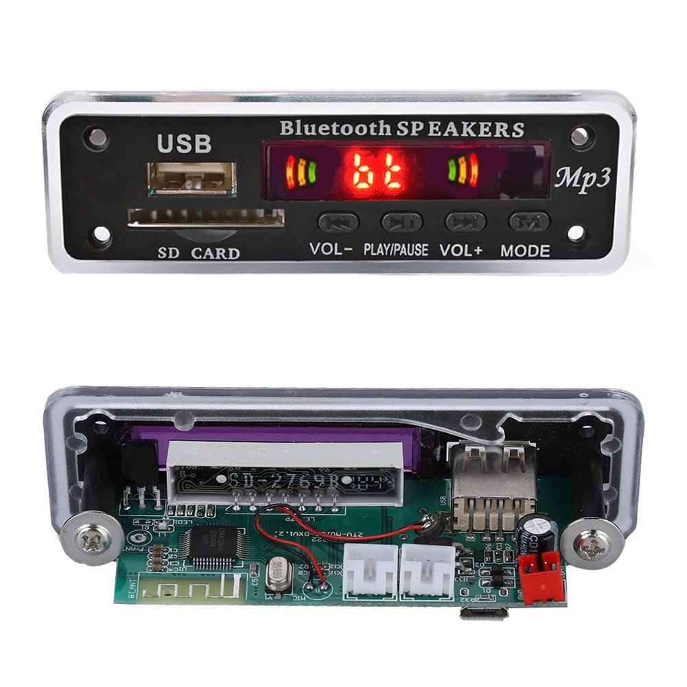 MP3 плеер с функцией Hands-free, Плата декодера, 5 В, 12 В, Bluetooth 5,0, 6 Вт, модуль усилителя автомобильного FM-радио, поддержка FM, TF, USB, AUX, рекордеры