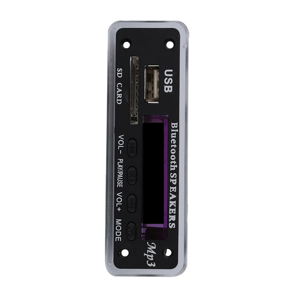 Автомобильный Динамик модуль FM радио USB SD карта беспроводной Bluetooth 5,0 MP3 декодер плата Характеристики: Поддерживает 4-цветный дисплей цветового спектра. Поддерживает Bluetooth версии 5,0 и звонки в режиме громкой связи. Поддерживает AUX, FM, USB, SD. Поддерживает музыку в формате MP3/WMA/WAV/FLAC/APE. Поддерживает Bluetooth на песне, следующей песне, регулировку громкости, воспроизведение/пауза, отключение звука. Поддерживает функцию отключения питания, а песню и громкость, воспроизводимые до выключения памяти, можно запоминать в текущую точку. Поддерживает USB/SD-карту/Bluetooth/FM/коммутатор. Включите Bluetooth по умолчанию, если у вас есть карта или флешка, поставьте музыку напрямую. Название товара: Плата декодера MP3 Материал: пластик + металл Bluetooth: BT 5,0 Формат музыки: MP3/WMA/WAV/FLAC/APE Напряжение: 12 В постоянного тока Рабочий ток: 600ма-800ма Батарея пульта дистанционного управления: батарейка-кнопка CR2025 (не входит в комплект) Особенности: Bluetooth 5,0, mp3-плеер, Отверстие: 83 мм x 23 мм x 31 мм/3,27 дюйма x 0,91 дюйма x 1,22 дюйма (прибл.) Расстояние между монтажными отверстиями: 74 мм x 16 мм/2,91 дюйма x 0,63 дюйма (прибл.) Размер панели: 93 мм x 30 мм x 31 мм/3,66 дюйма x 1,18 дюйма x 1,22 дюйма (прибл.) Примечания: Из-за разницы в освещении и настройках экрана цвет товара может сильно отличаться от изображений. Замеры сделаны вручную, поэтому возможны незначительные отклонения в размерах. Посылка входит: 1 x Плата декодера MP3 1 x Рамка 1 пульт дистанционного управления 2 соединительных кабеля