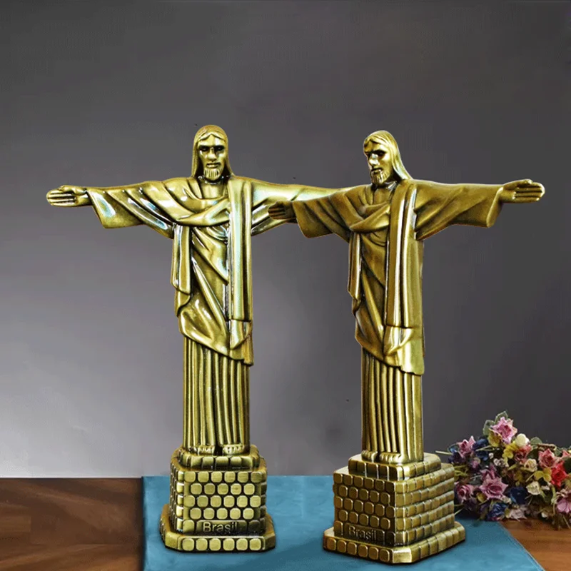 Spray Paint Metal Crosses Standing Type Jesus Statue with Base Crucifix Christ Catholic Antique Home Chapel Wall Decor Cross
