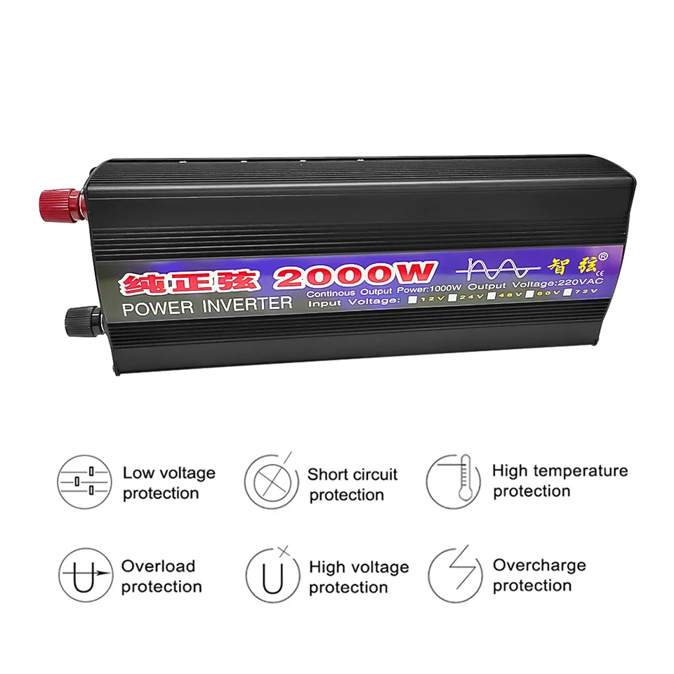 Волна выходного напряжения:Чистая синусоидаВходное напряжение: DC12V/24V/48V/60Выход напряжение: AC220V/110VВыходная частота: 50 Гц/60 ГцЗащита: нет защиты