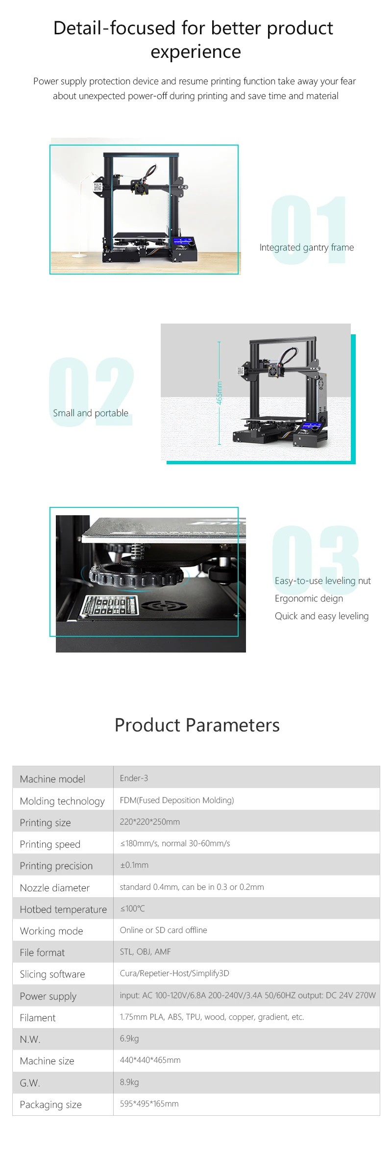 Умное управление большим сенсорным экраном: обеспечивает лучший пользовательский опыт 3d-печати. Полуавтоматический контроль выравнивания.
