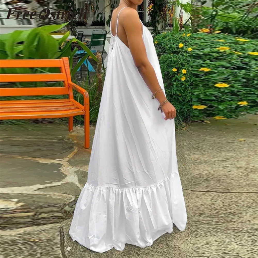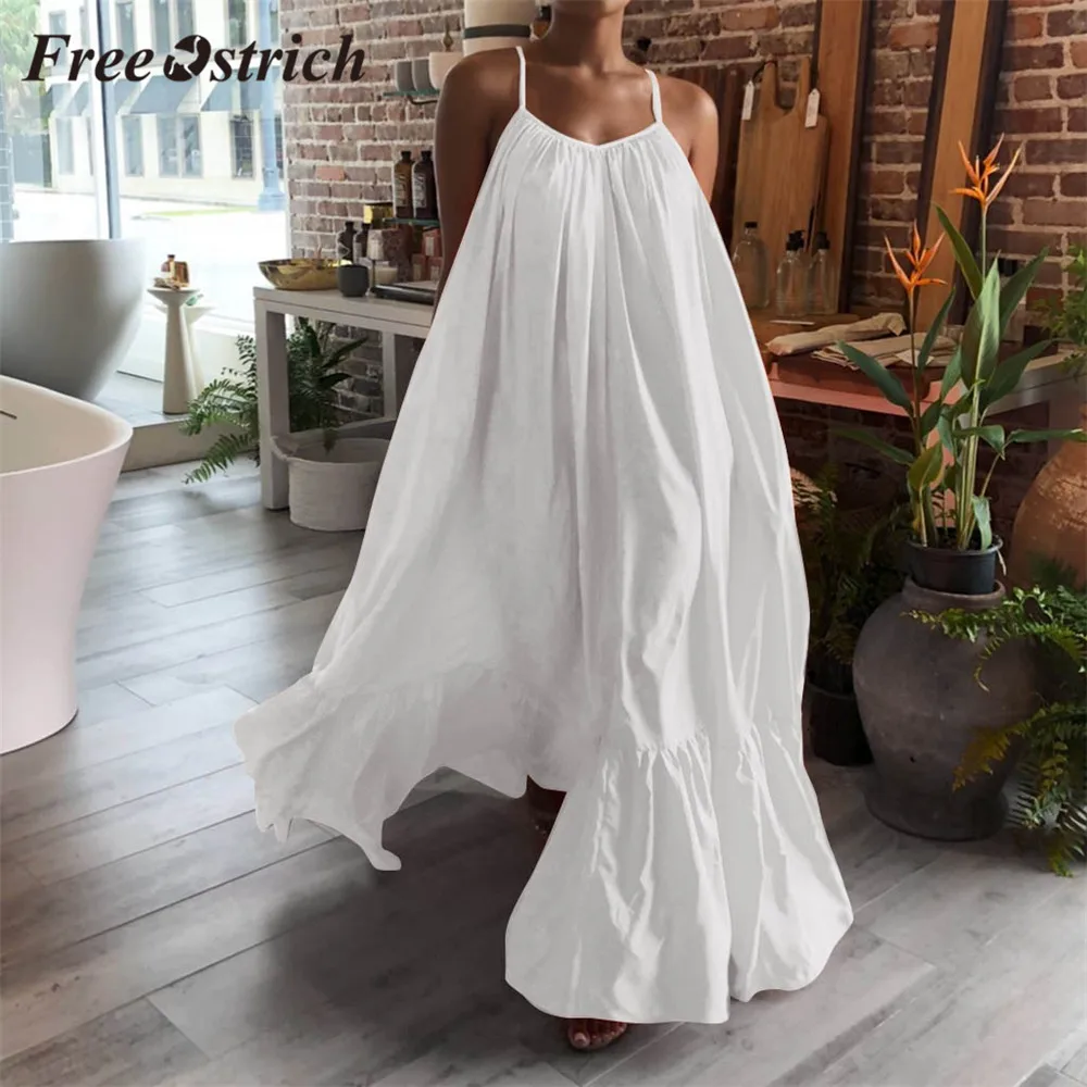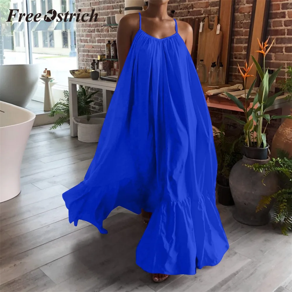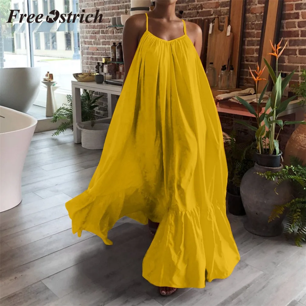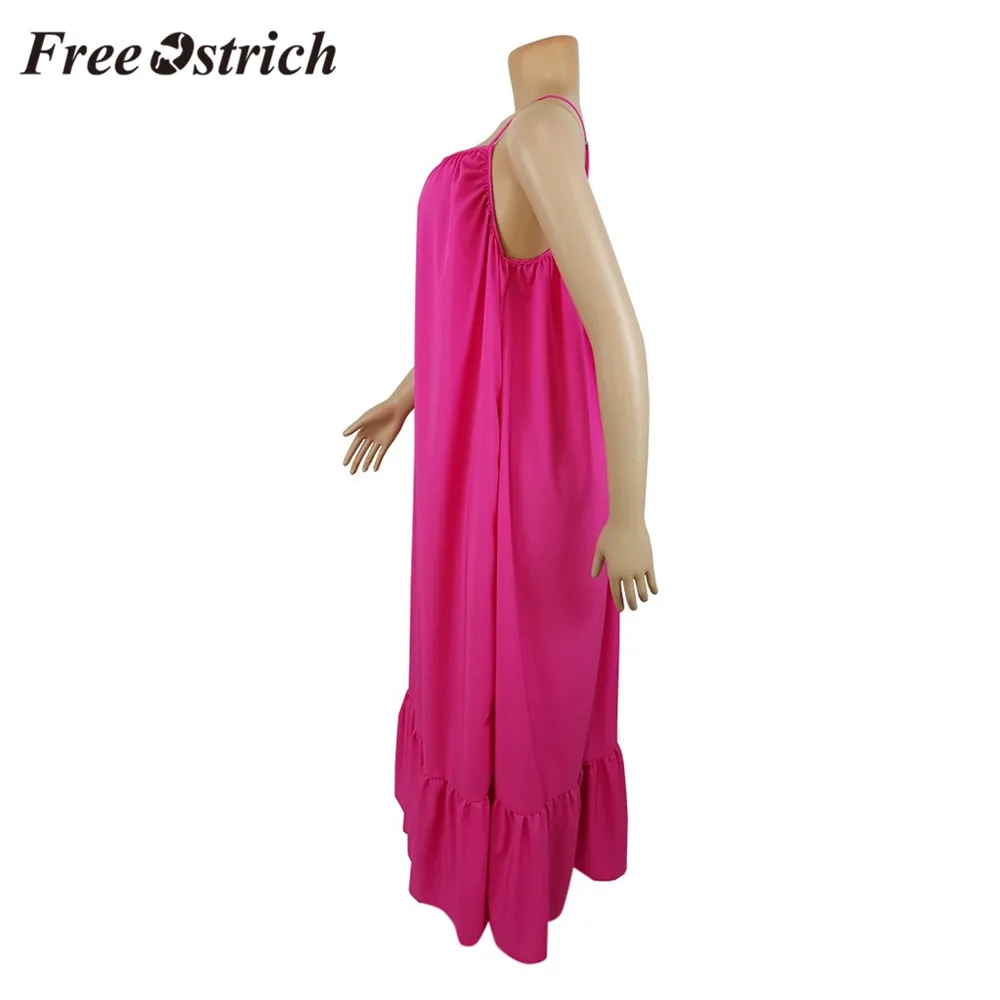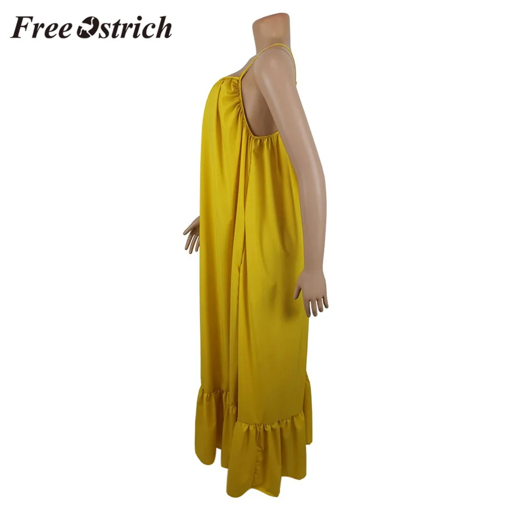 Бесплатная страусиное Летнее Длинное Платье Макси женское сексуальное свободное пляжное платье размера плюс 5xl без рукавов на бретелях женские вечерние платья 2020