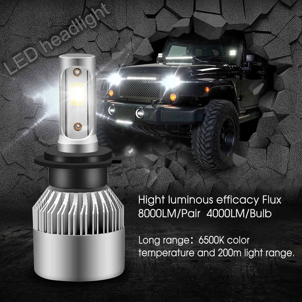 Одинарный свет: H1 H3 H11 H7 9005 HB3 9006 HB4 с 2 стороны COB светодиодный лампы.