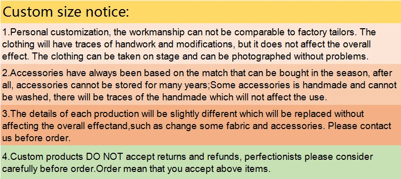 Обратите внимание: это костюм индивидуального размера, пожалуйста, сообщите нам свою информацию перед заказом, как показано ниже: