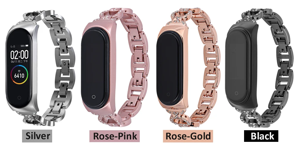 Розовый браслет Mi Band 3, ремешок для умных часов Xiaomi Mi Band 6 5 4, роскошный браслет из нержавеющей стали с бриллиантами, браслет для женщин Mi6