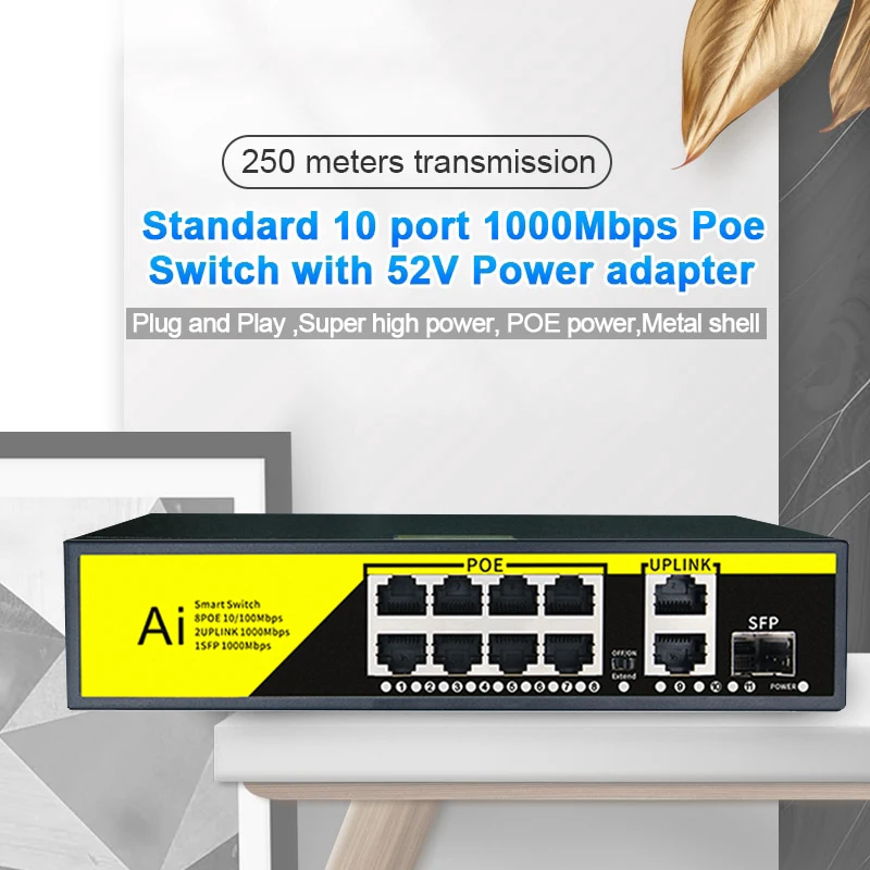 10(8 + 2 + 1) порт коммутатор питания через ethernet (встроенный)