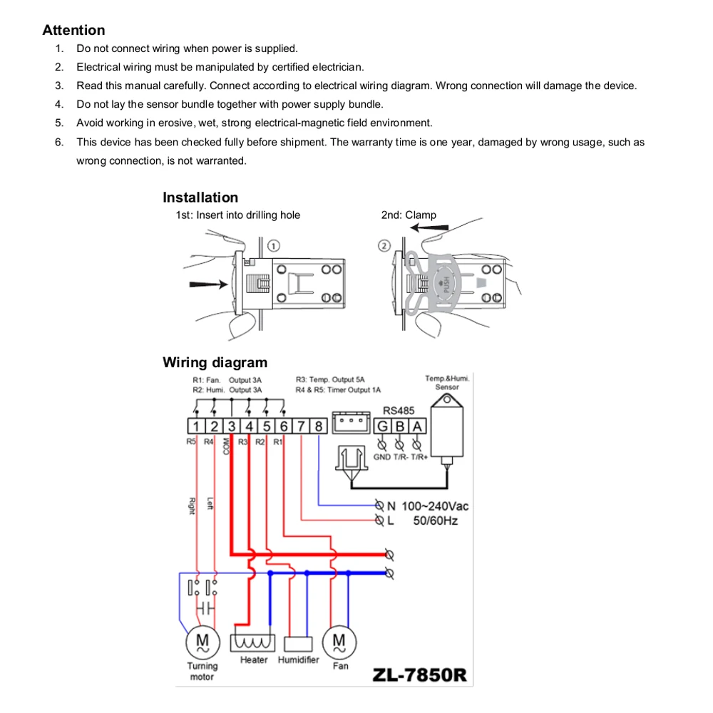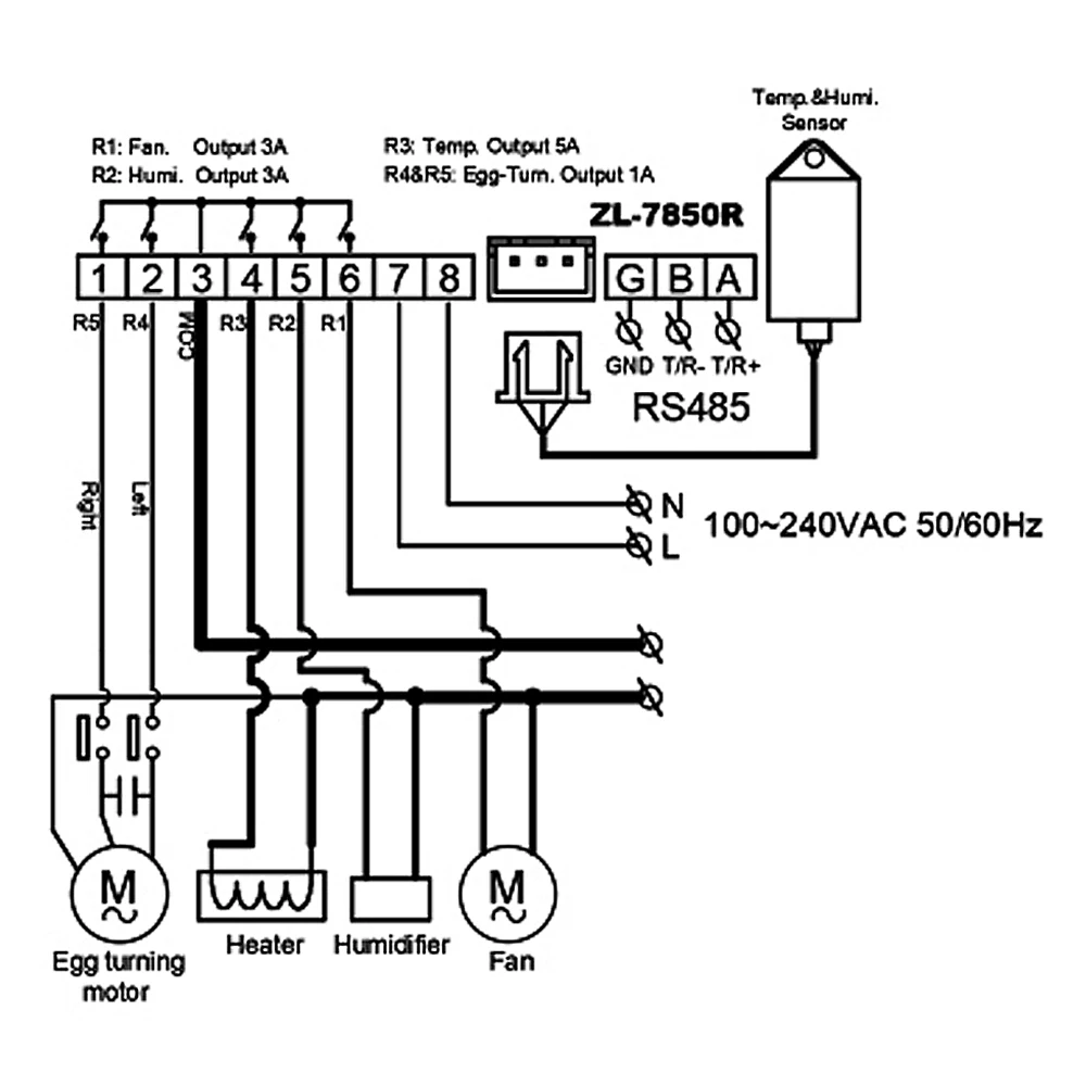 Выходная нагрузка: контроль температуры ≤ 5A, контроль влажности, вентиляция ≤ 3A, поворот левого яйца, поворот правого яйца ≤ 1A