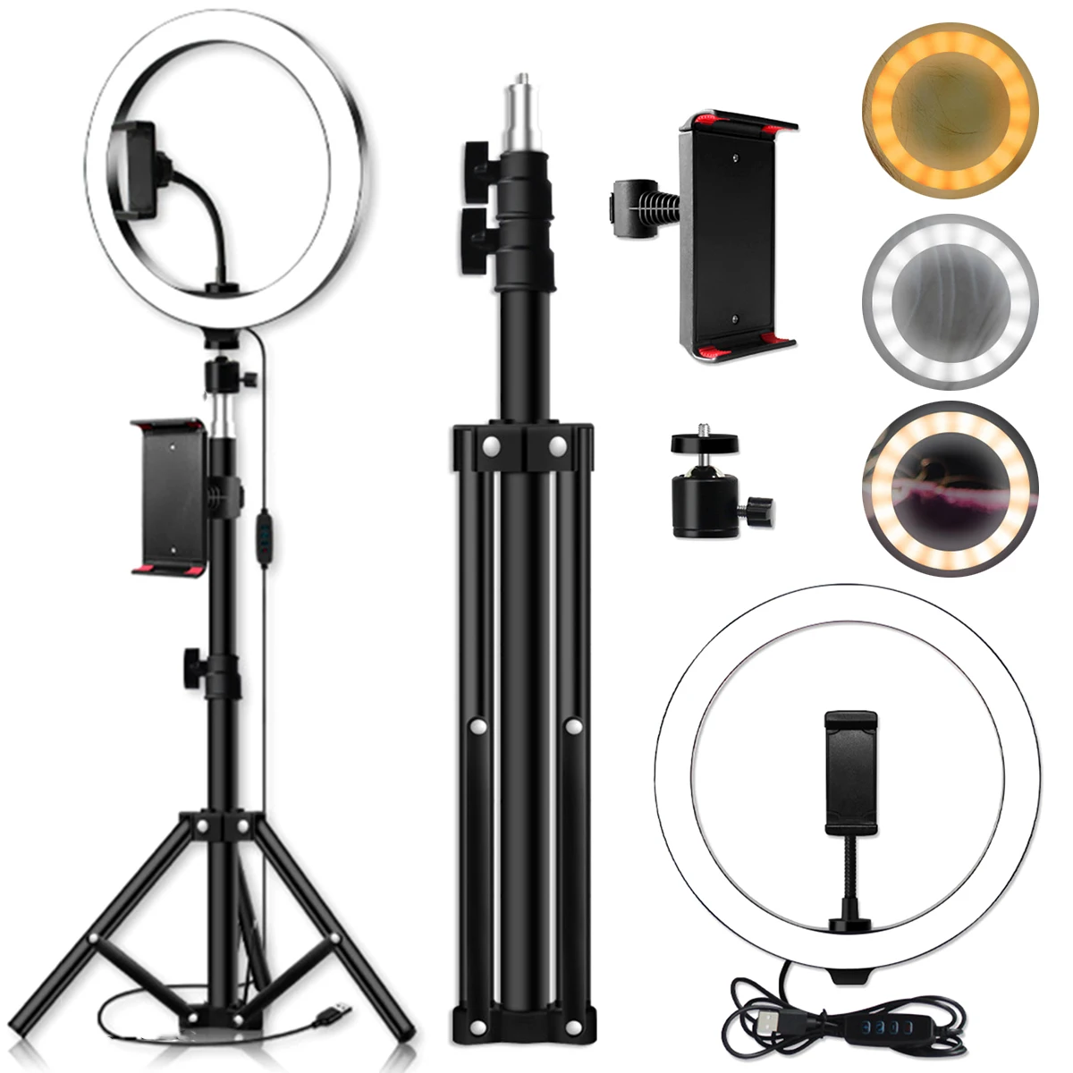 1 х светодиодный кольцевой светильник с зажимом для телефона