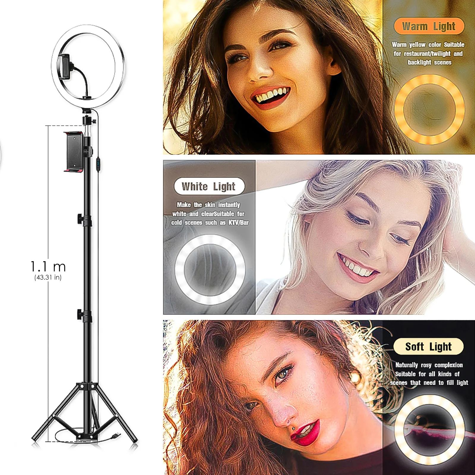 3 светильник Регулировка цвета: белый светильник, мягкий светильник, теплый светильник, разные цвета для различных результатов съемки