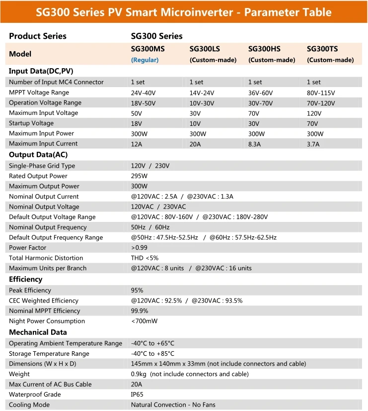 Один блок подключается к одному модулю PV Максимальная выходная мощность 350 Вт переменного тока Однофазный выход, гибкие светодиодные полосы 3 фазы фотоэлектрических систем 2,4G Беспроводная связь и мониторинг До 7 единиц (120 в) на ветку Настраиваемый диапазон различного входного напряжения (DC, PV) Интегрированный кабель шины переменного тока, готов к использованию Низкая стоимость, простая установка