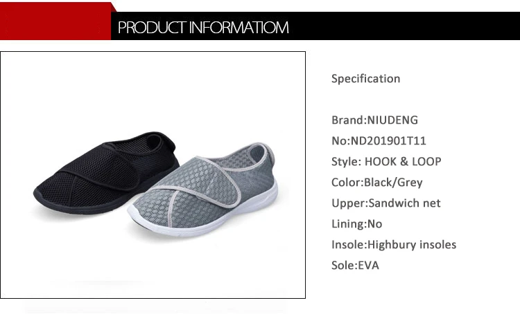 Спецификация Бренд: NIUDENG Номер: ND201901T11 Стиль: крюк и петля Цвет: черный/серый Верх: сэндвич-сетка Подкладка: Нет Стелька: стельки Хайбери Подошва: ЭВА