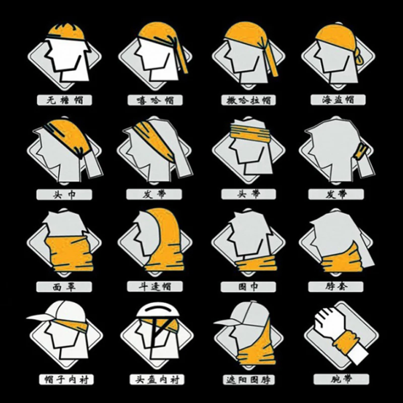 16 различных способов для ваших приключений и повседневной жизни, можно носить как повязки на голову, гетры на шею, шарф бандана, повязка от пота на голову, Балаклава, маска для лица, шапочка, шейный платок, повязка на голову, повязка на руку, повязка на голову.