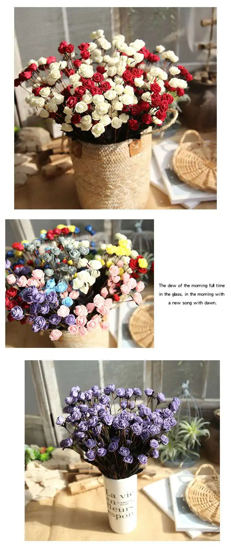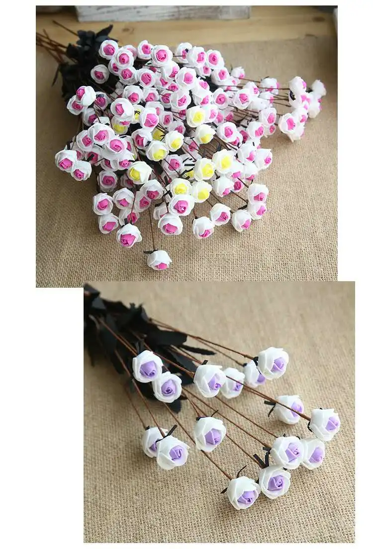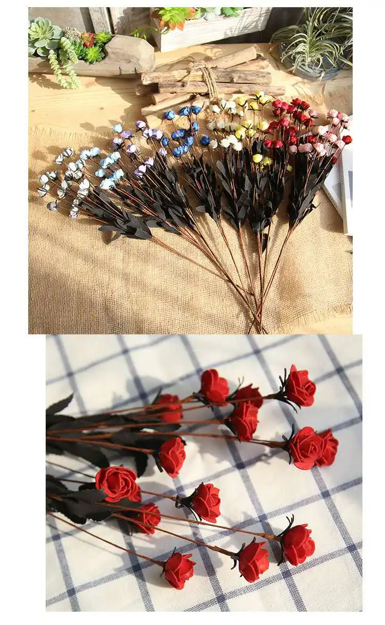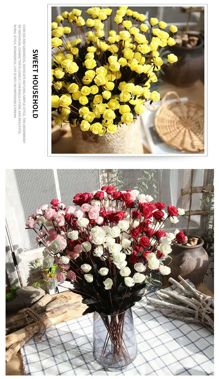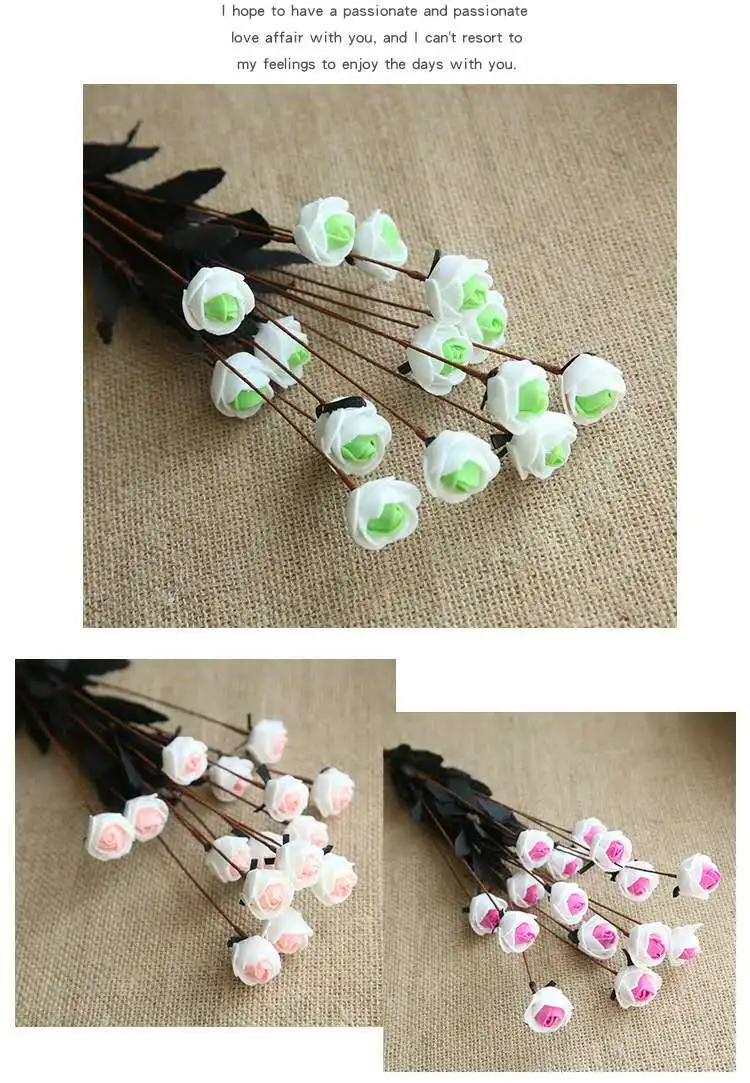 Название: 15 PE Маленькие розы Материал: PE Информация о продукте общая длина 50 см Характеристики: цена-одна ветка, каждая ветка состоит из 15 небольших цветочных головок диаметром 25 см Голова розы и несколько листьев Длина лезвия: 5 см Вес: 17 граммов