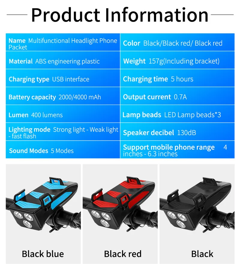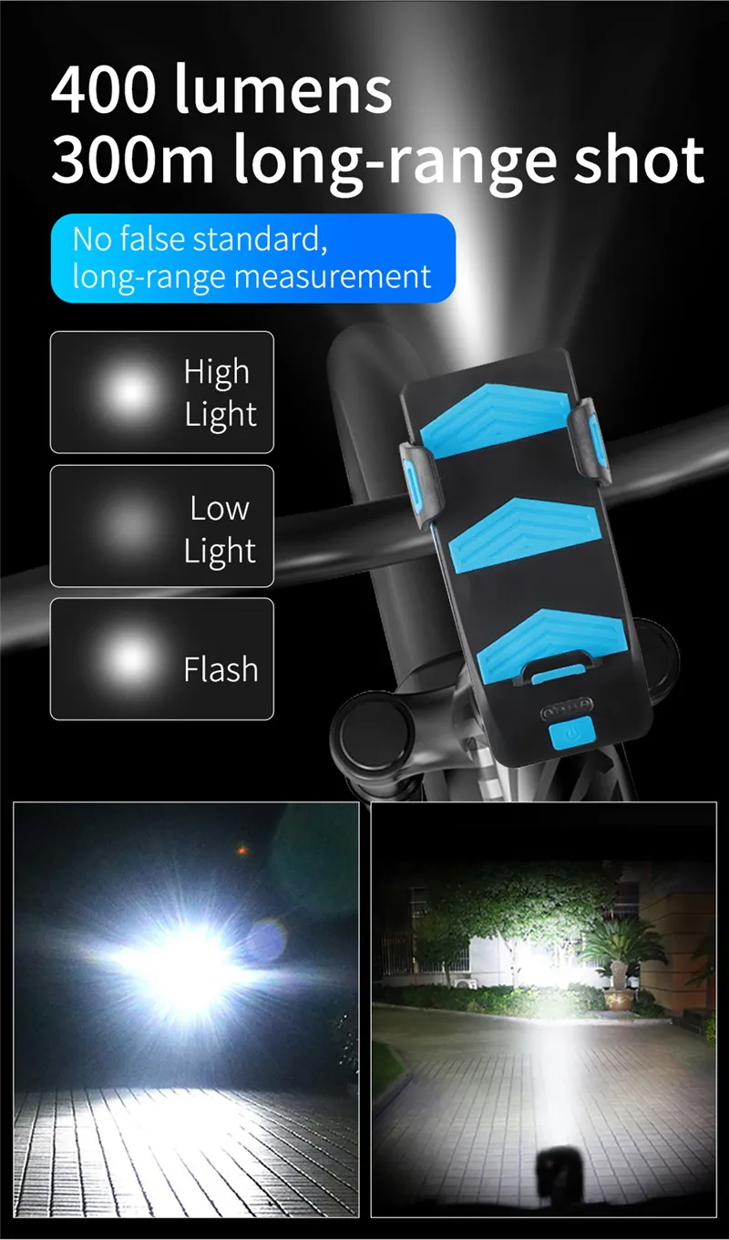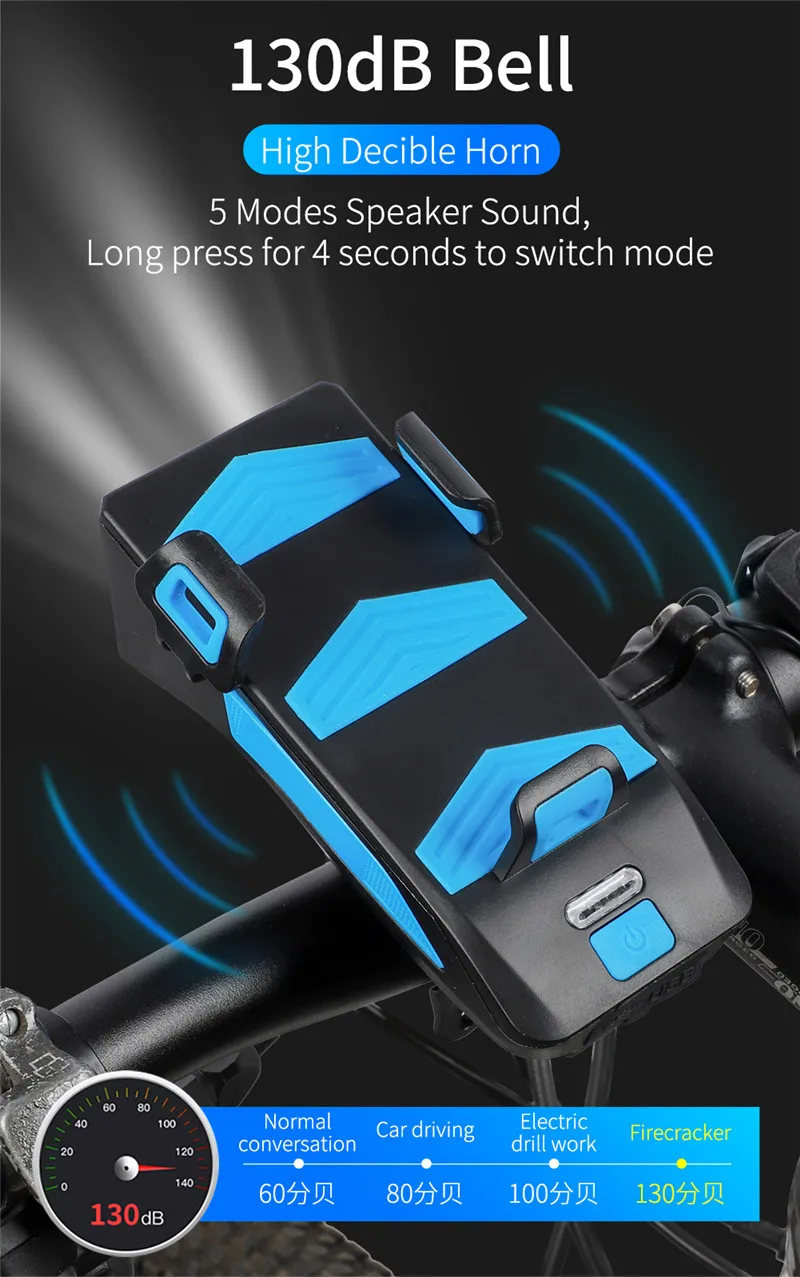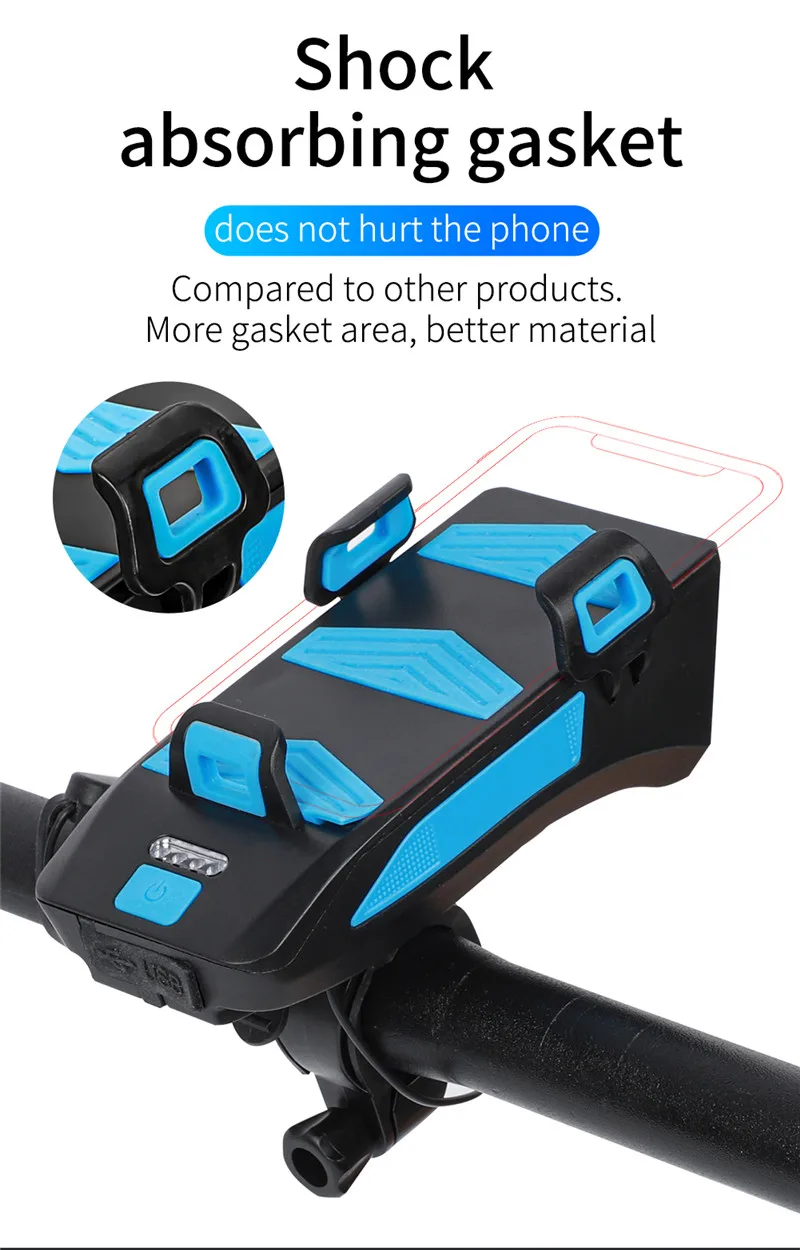 4 в 1 велосипедный передний светильник держатель для телефона Подставка для руля с функцией велосипедного звонка