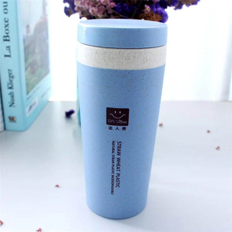 300ML Double-wall Insulation Wheat Fiber Straw Coffee Cup Travel Mug Leakproof Portable Mug Coffee Tea Water Bottle Cups 4 Color