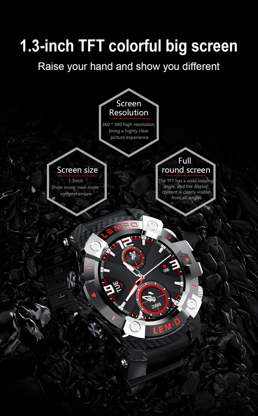 Совместимая система: Android4.4 и выше, IOS8.2 и выше Вспышка: 128 м + 64 м Размер экрана: 1,3 дюйма Разрешение: 360*360 Bluetooth:BT5.0 Емкость аккумулятора: 350 мАч Водонепроницаемость: IP67 (можно носить во время дождя и ручной стирки, но не помещайте его в горячую воду и не подходит для плавания)