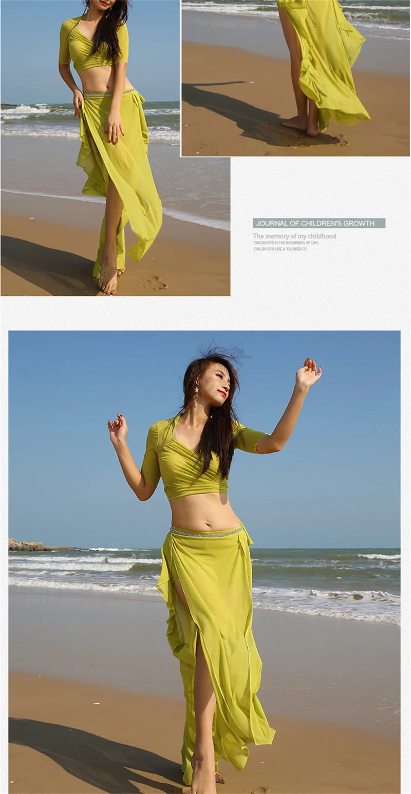 Женский набор костюма для танца живота топ длинные юбки с разрезом для выступлений восточные соревнования Bellydance дамские тренировочные костюмы индийские костюмы