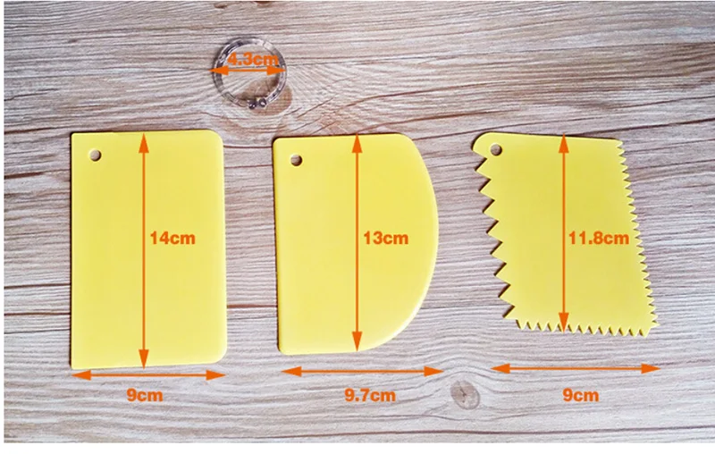 3 pcs Baking Pastry Tools Plastic Dough Knife Icing Fondant Scraper Decorating Plain Smooth Spatulas Cutters Cake Tool