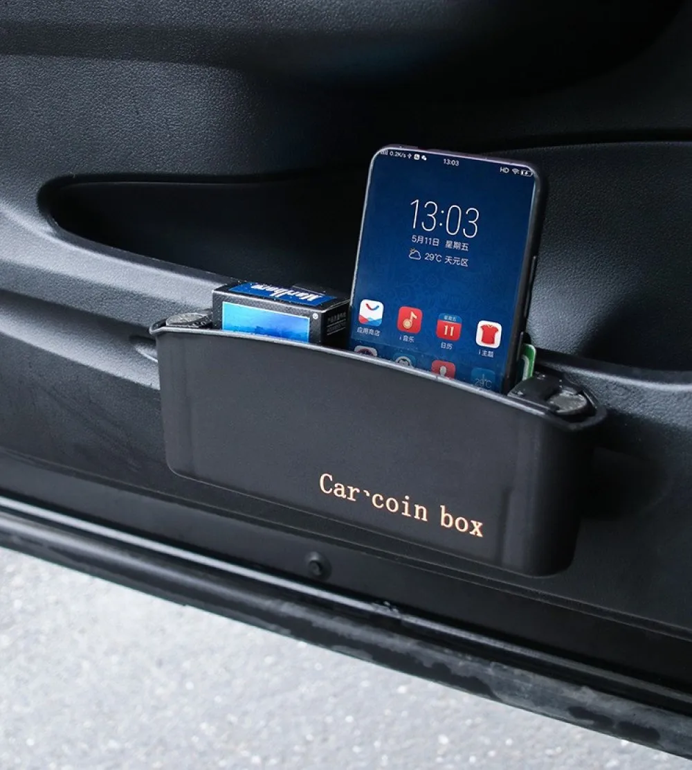 Автомобильный Дверной ящик для хранения, черный полипропиленовый ящик для монет, органайзер для хранения мелочей, телефонных монет, карт и т. д., аксессуары для автомобильного интерьера