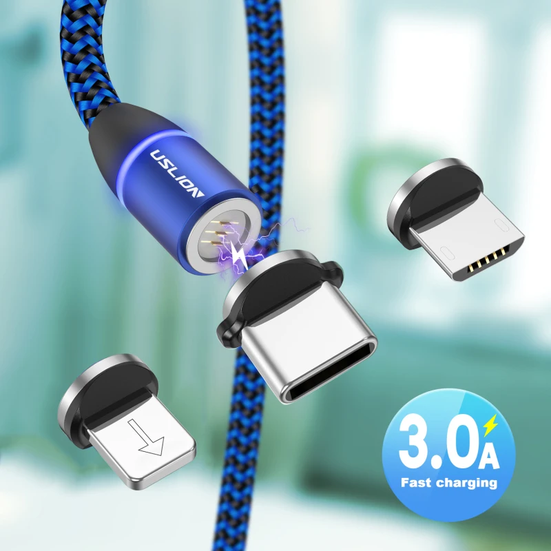 2. Функция-3 А Быстрая зарядка 360 градусов Поворот круглый + светодиодный индикатор + сильный магнит + нейлоновая оплетка