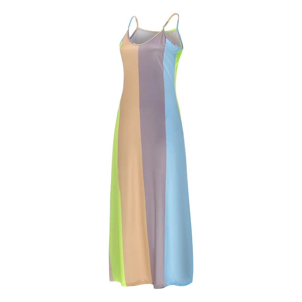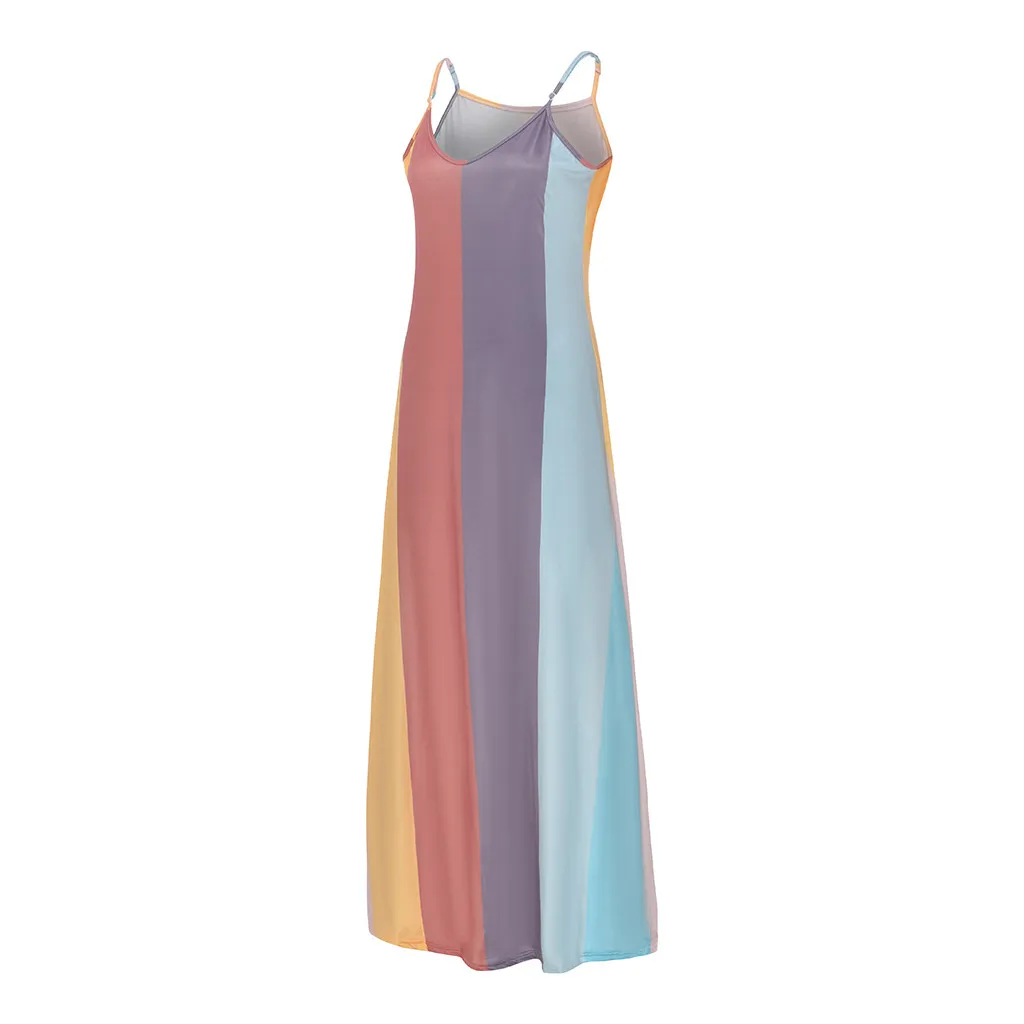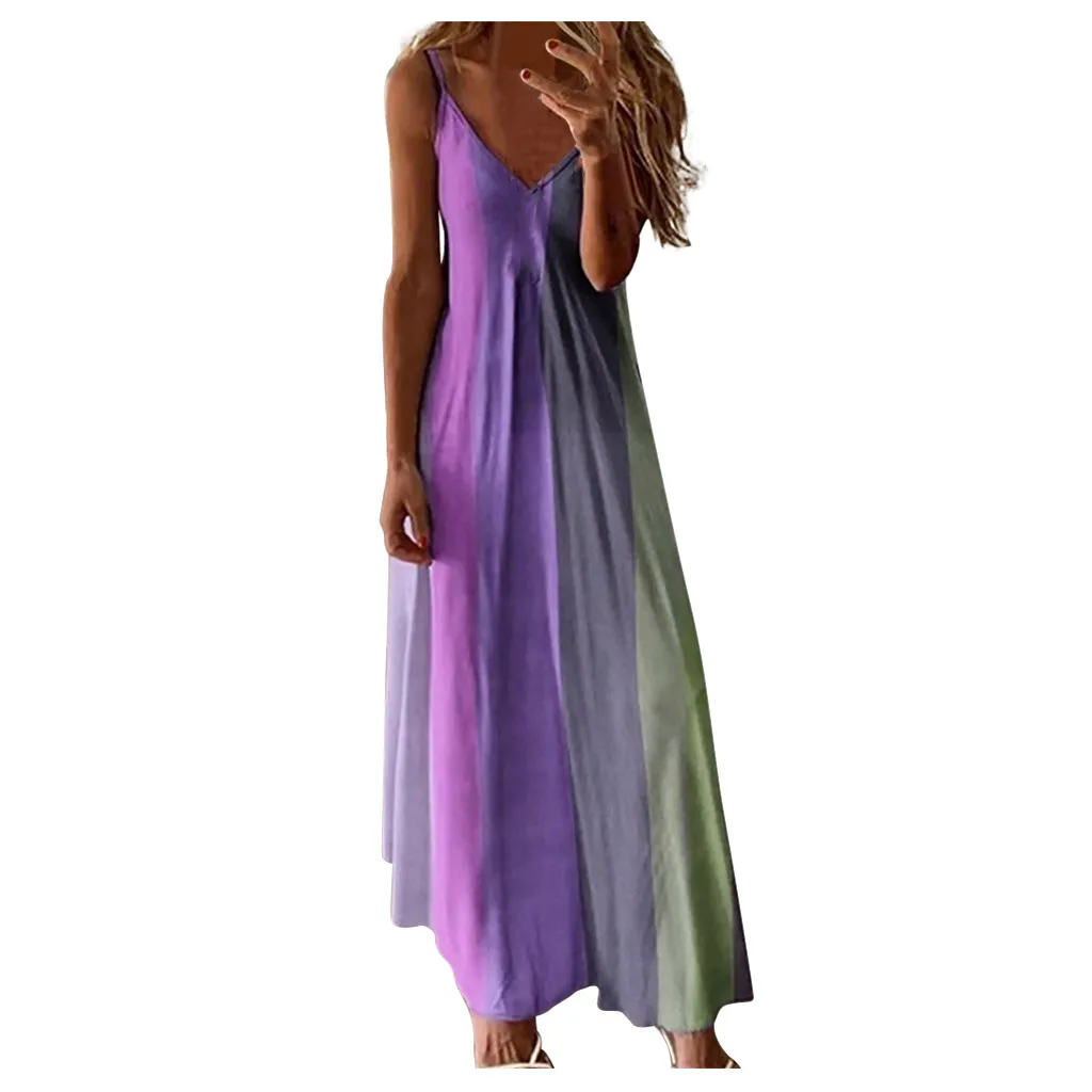 Женское длинное платье в полоску без рукавов с v-образным вырезом размера плюс