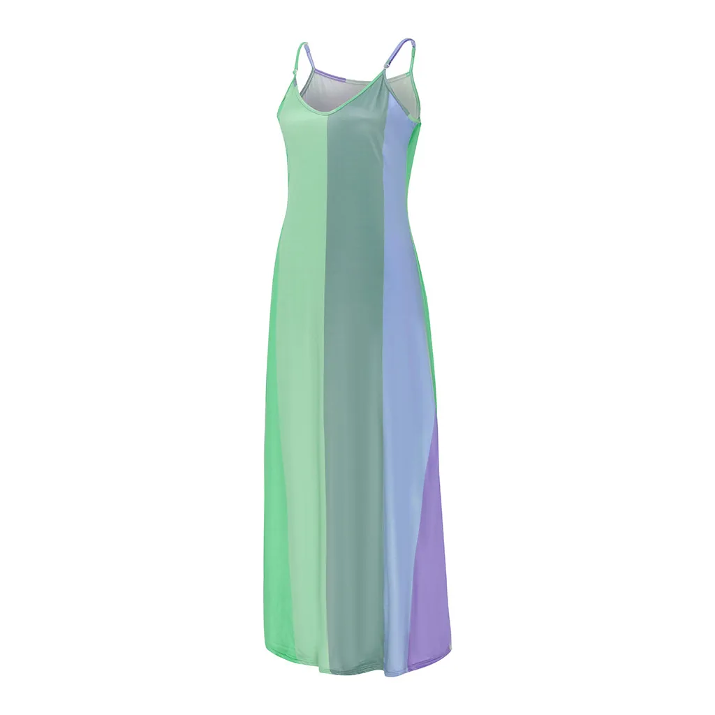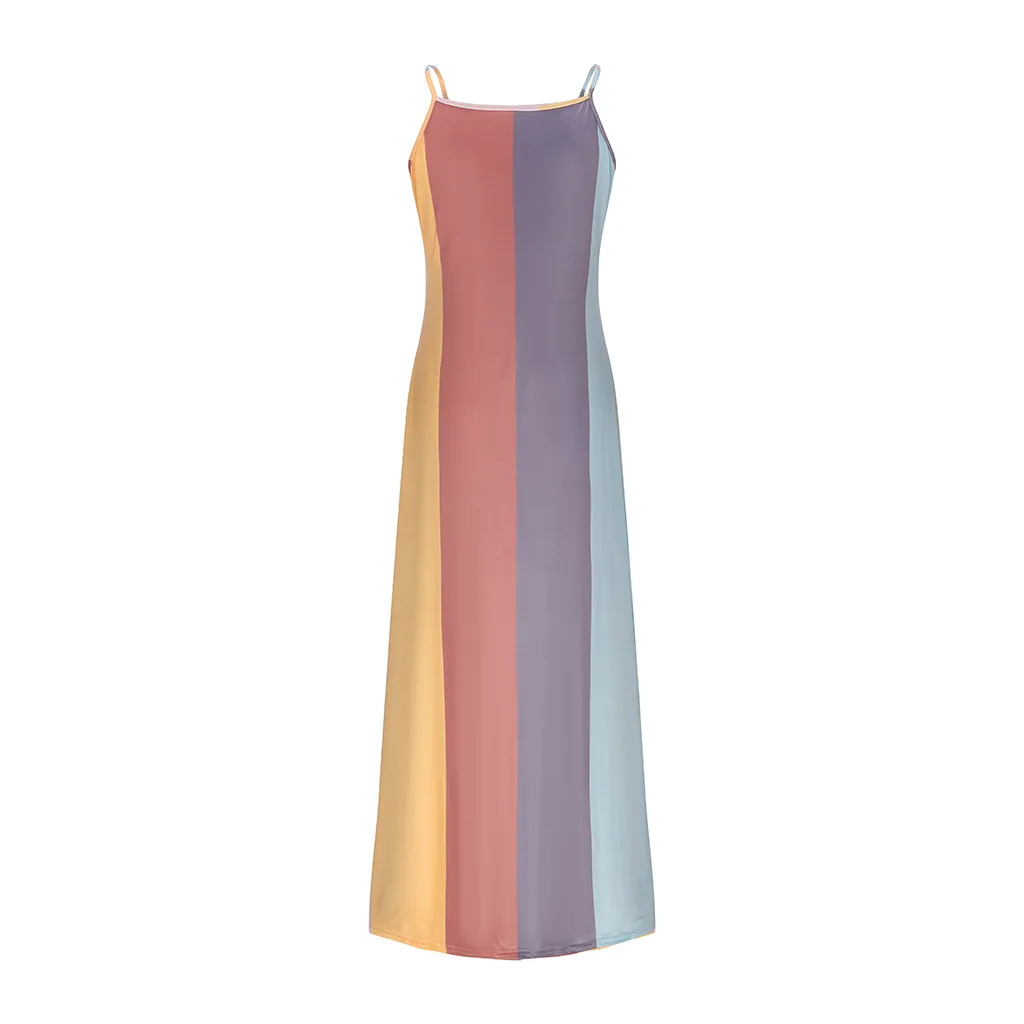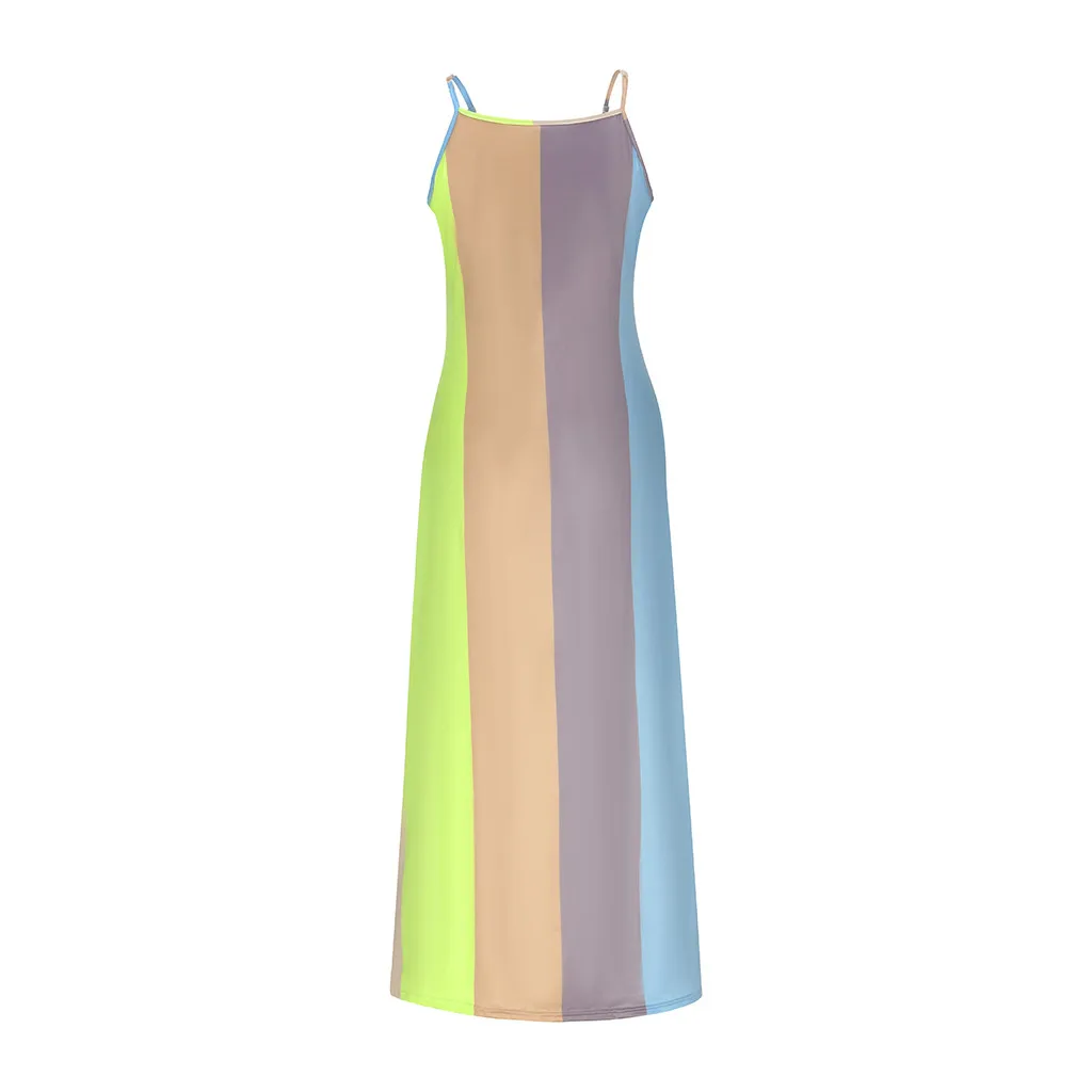 Женское длинное платье в полоску без рукавов с v-образным вырезом размера плюс
