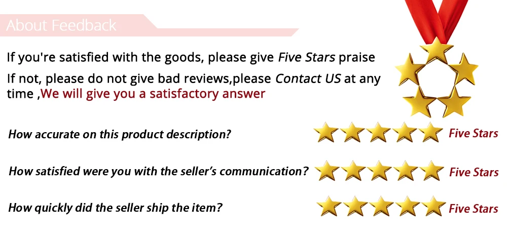 4. Мы должны с удовольствием помочь им решить любую проблему, пожалуйста, свяжитесь с нами, прежде чем оставлять нам отрицательные отзывы.