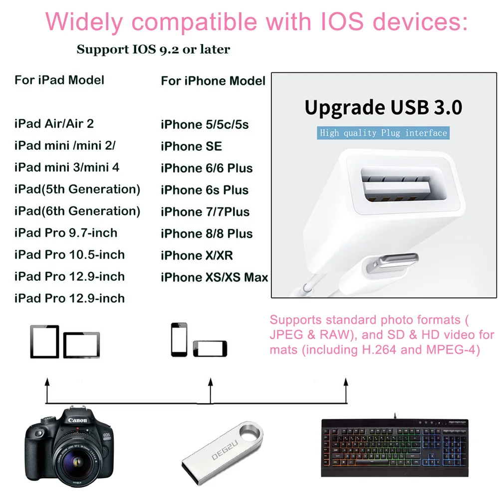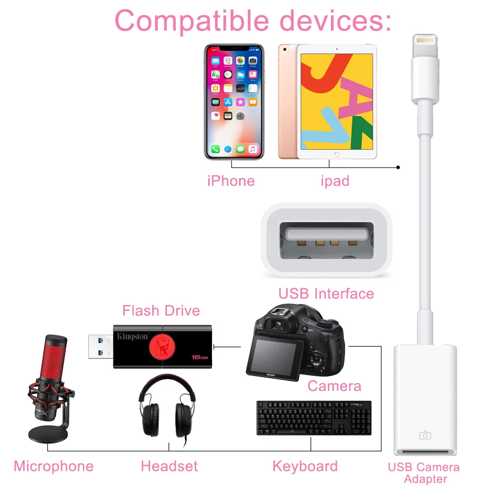 Мобильное устройство считывания карт адаптер USB 3,0 Lightning Комплект для подключения камеры для iPhone iPad флеш-накопитель мышь микрофон конвертер Кабель