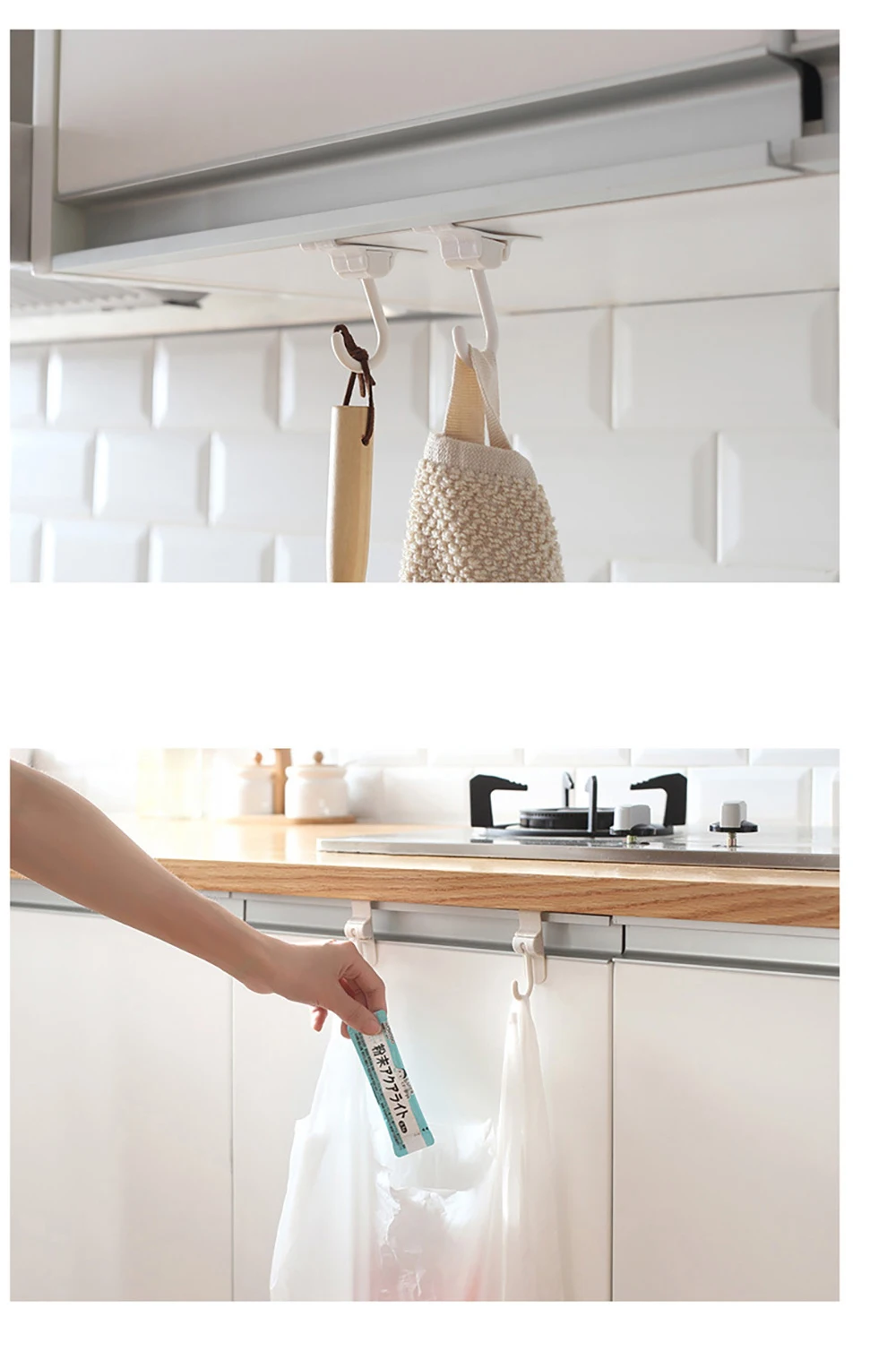 2 крючка за дверью шкафа ABS Бесплатная Пробивка кухонный крючок для хранения тряпичное полотенце стойка для домашней двери Задняя сумка для мусора крючок
