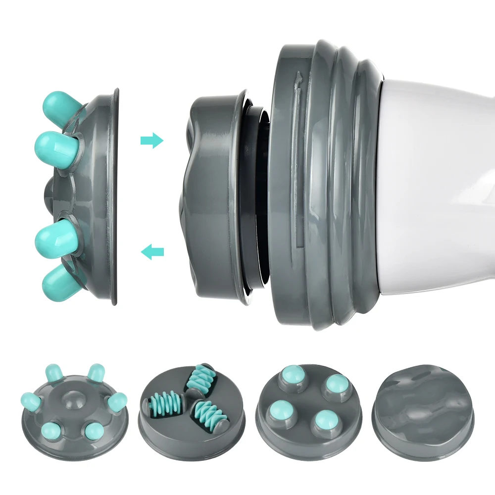 2. Регулируемые уровни интенсивности и 4 различных сменных массажных головки могут обеспечить индивидуальный массажный комфорт, можно использовать на шее, спине, талии, ногах, руках, бедрах, ягодицах с эффектом полного похудения.