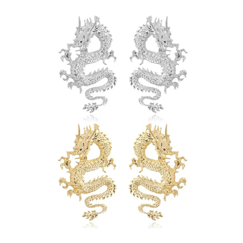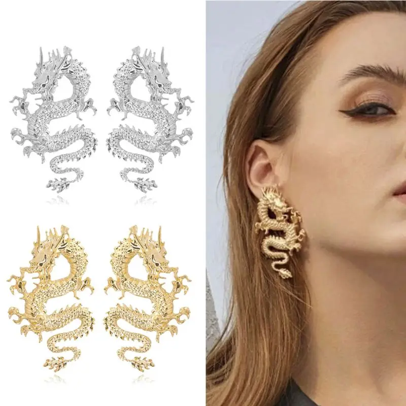 Item Type :Earrings Designs:Dragon Material:Alloy (Nickel Free, Hypoallergenic property) Color:Silver,Gold, Size: 6.2x3.8cm/2.5"x1.5" More detailed,please see photo. Quantity:1 Pair. Note: Size for manual measurement, there may be a 0 to 2 cm error, belongs to the normal phenomenon. And due to the difference between different monitors, the picture may not reflect the actual color of the item. Thank you! Package includes: 1 Pair x Earrings.