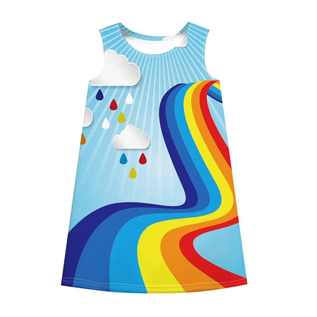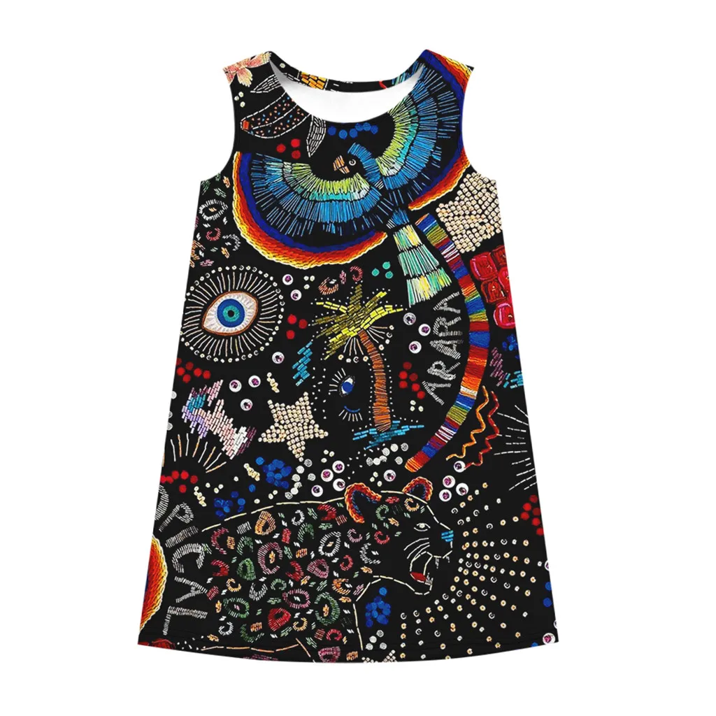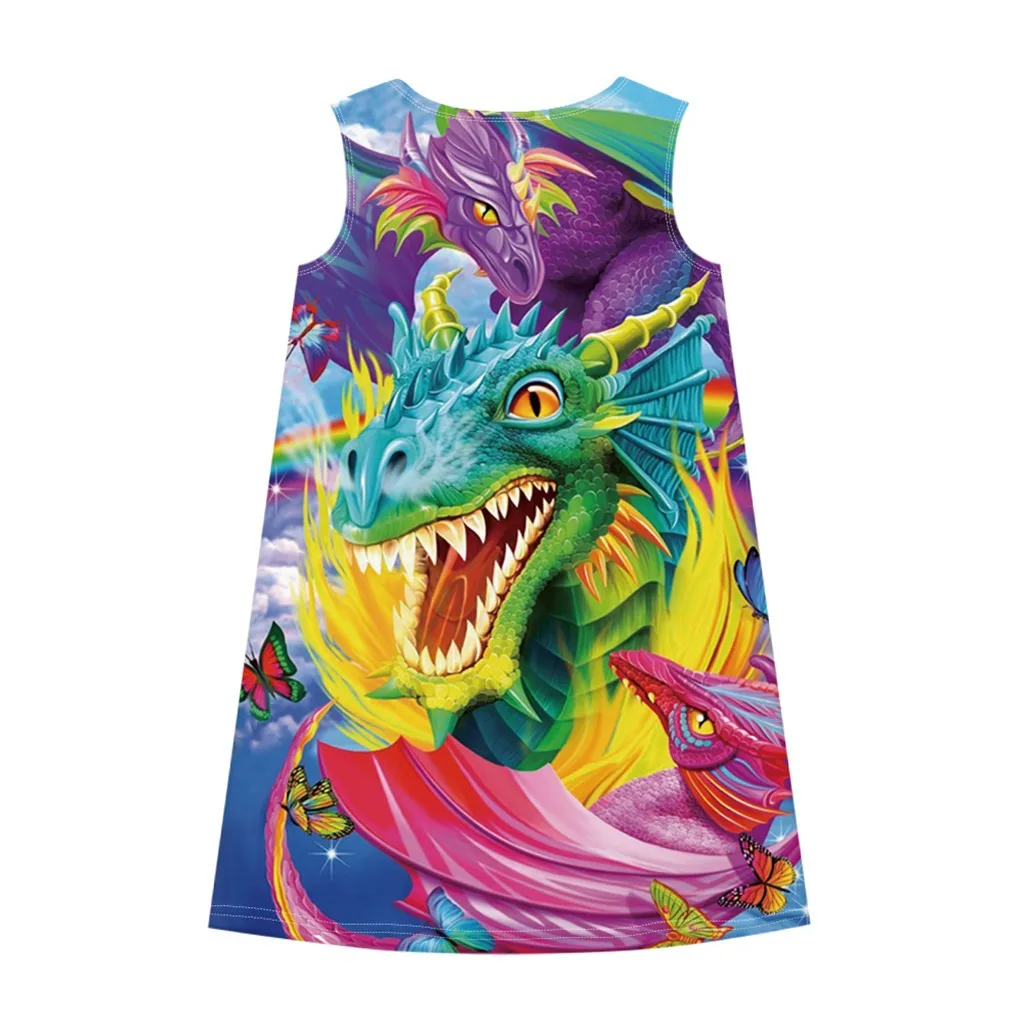 Детская подростковая одежда для детей Платье-футболка без рукавов с объемным цифровым принтом для девочек