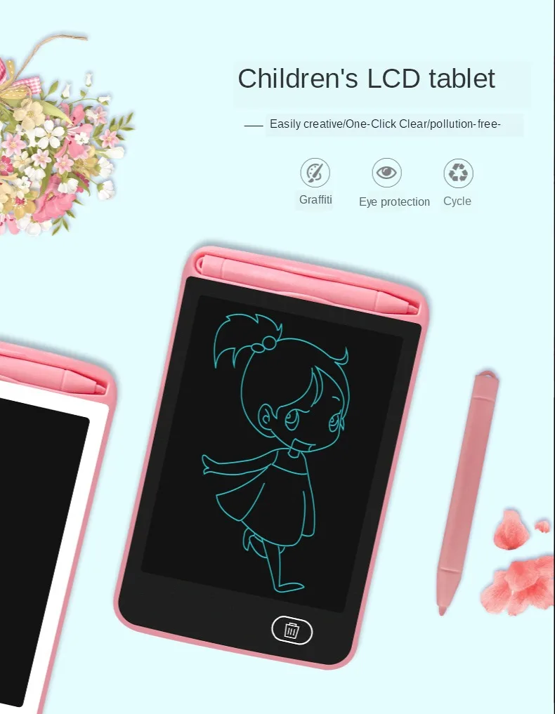 Чувствительная к давлению поверхность ЖК-дисплея делает ваше письмо или рисунок появляются без каких-либо задержек. Пишите или рисуйте с помощью прилагаемого пластикового стилуса или любого другого подходящего инструмента, даже пальцем! Простота в эксплуатации и высокая эффективность, Стирайте рисунок одним нажатием кнопки стирания. Ультратонкий и компактный дизайн, легко носить с собой и легко скользить в ваш портфель, рюкзак или другую сумку. Легкий и портативный, идеально подходит для школы, офиса, домашнего использования или другого использования. Встроенный сменный кнопочный элемент, длительный срок службы батареи до 2 лет, вам не обязательно беспокоиться о отключении питания.Область применения: