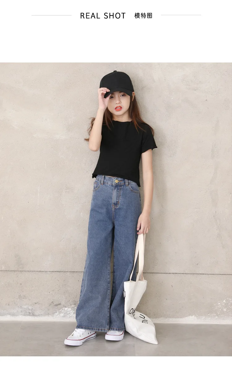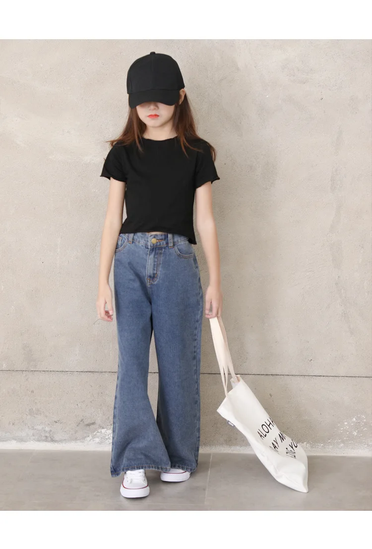 Джинсы для девочек; Свободные однотонные универсальные джинсы; Повседневная одежда для девочек; Сезон весна-лето
