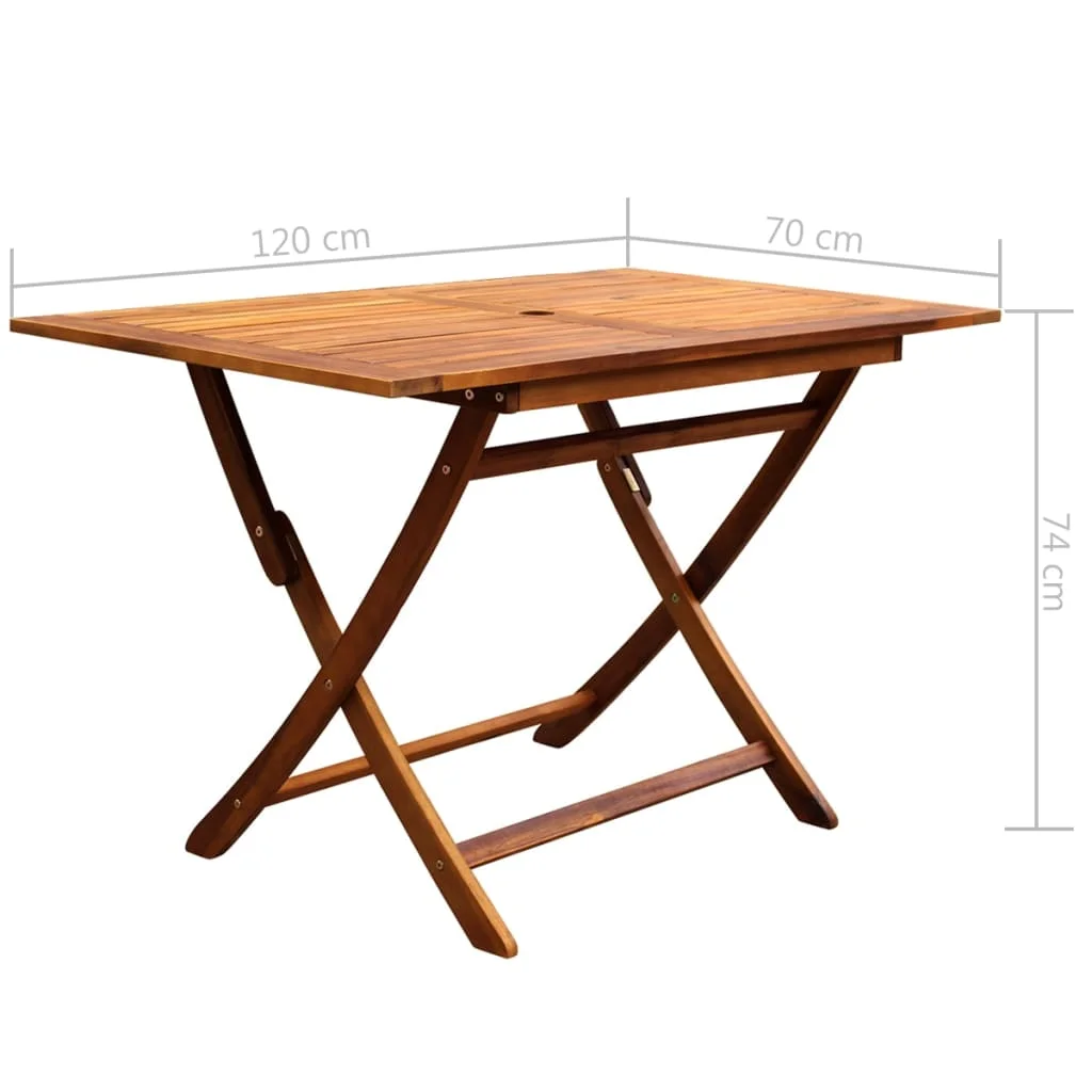 Цвет: коричневый Материал: твердая древесина акации с натуральным маслом Размеры стола (в сложенном виде): 120x24x105 см (Ш x Г x В) Размеры стола: 120x70x74 см (Д x Ш x В) Диаметр отверстия зонта: 5 см Размеры стула (в сложенном виде): 54x15x109 см (Ш x Г x В) Размеры стула: 51x56x91 см (Ш x Г x В) Ширина сиденья: 44 см Глубина сиденья: 39 см Высота сиденья от земли: 44 см Высота подлокотника от земли: 64 см Складной дизайн Легко собирается Доставка включает 1 прямоугольный стол и 4 стула