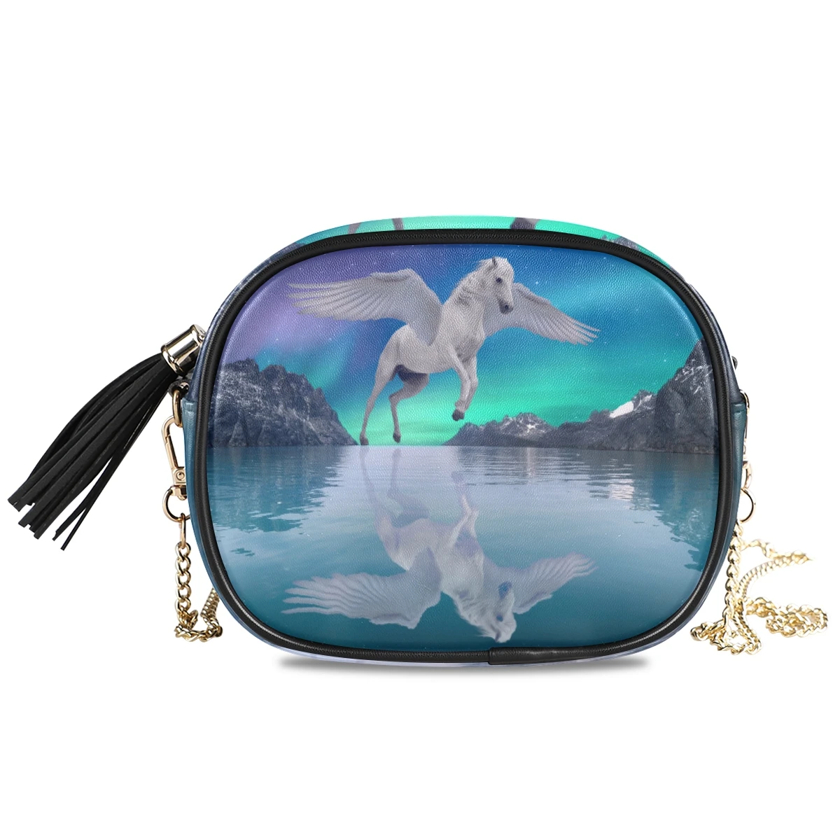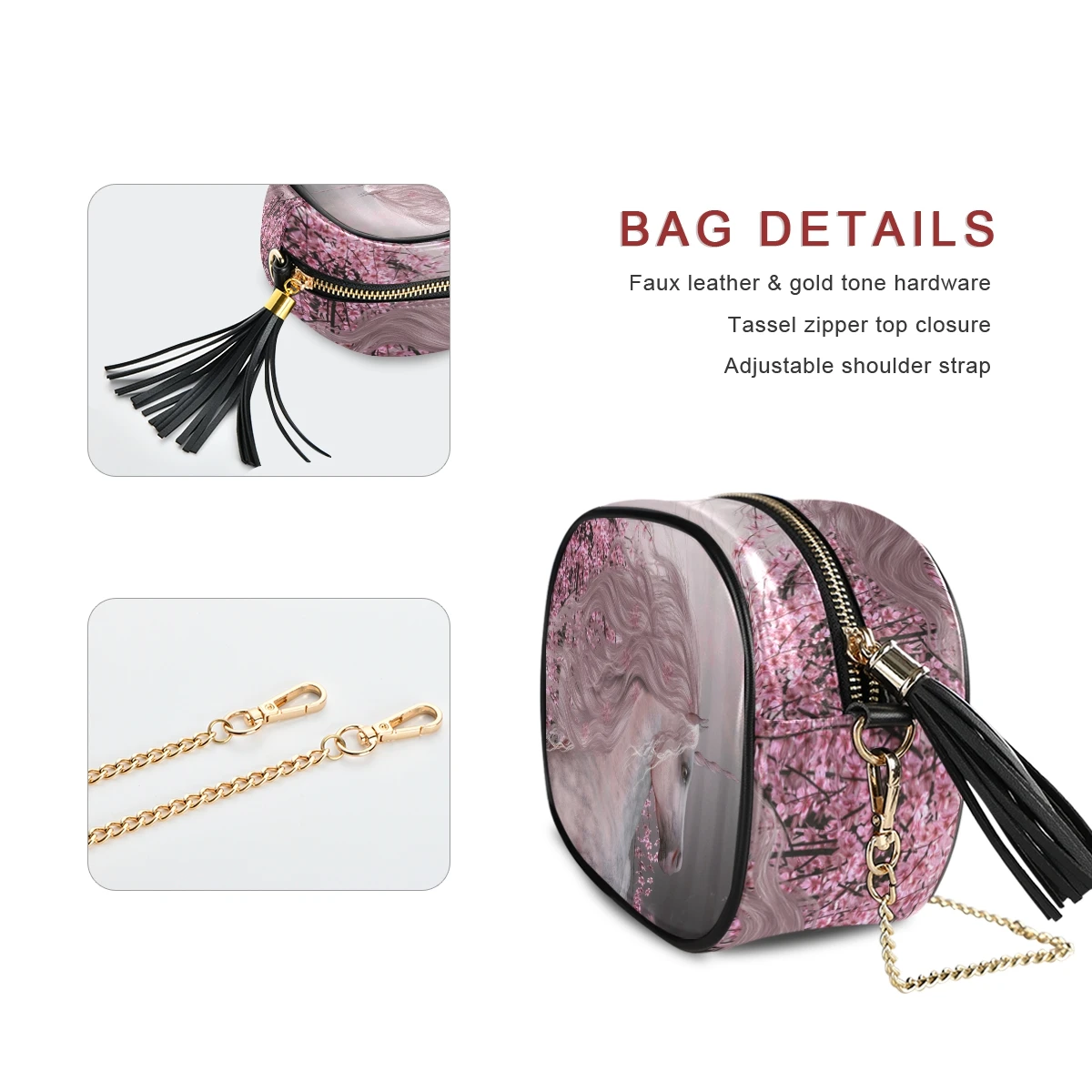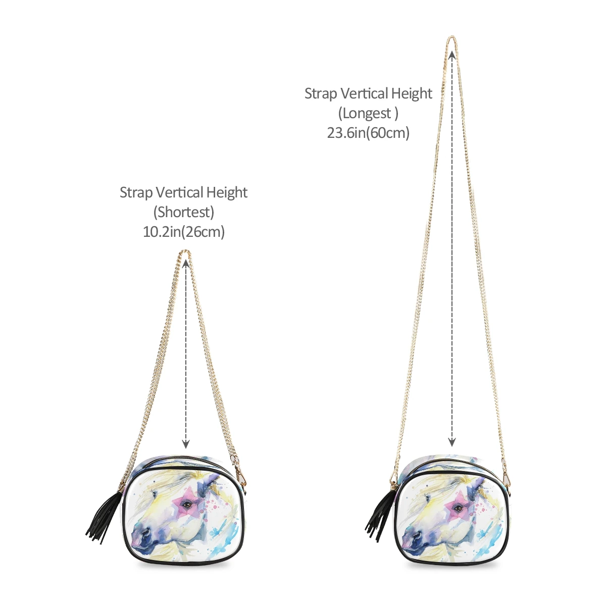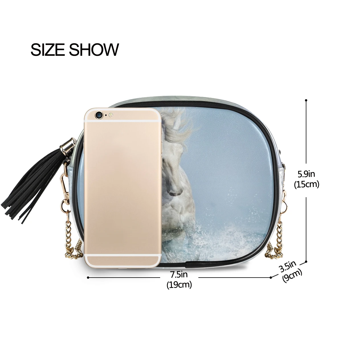 Сумка на цепочке, за исключением ремня с пряжкой D, с полным принтом Размеры: 19*15*9 см 7,48*5,90*3,54 дюймов Материал: искусственная кожа, микрофибра Подкладка: полиэстер (210D ткань Оксфорд) Основная сумка с небольшим внутренним отделением, средней вместимости, легко держать и надевать. Изготовленно из первоклассной из искусственной кожи, на ощупь мягкая и удобная обувь. Плечевая цепочка, Высококачественная фурнитура, съемная и регулируемая. Сделать сумку объемного эффекта. Сумка на цепочке может хранить косметику, например бумажники, мобильные телефоны, помады и т. д., которая используется для ежедневного выхода. Совет: для обеспечения высочайшего Качества Печати, пожалуйста, обратите внимание, что рекомендуемый размер изображения этого продукта (Ш x В): 2000x2000 или выше