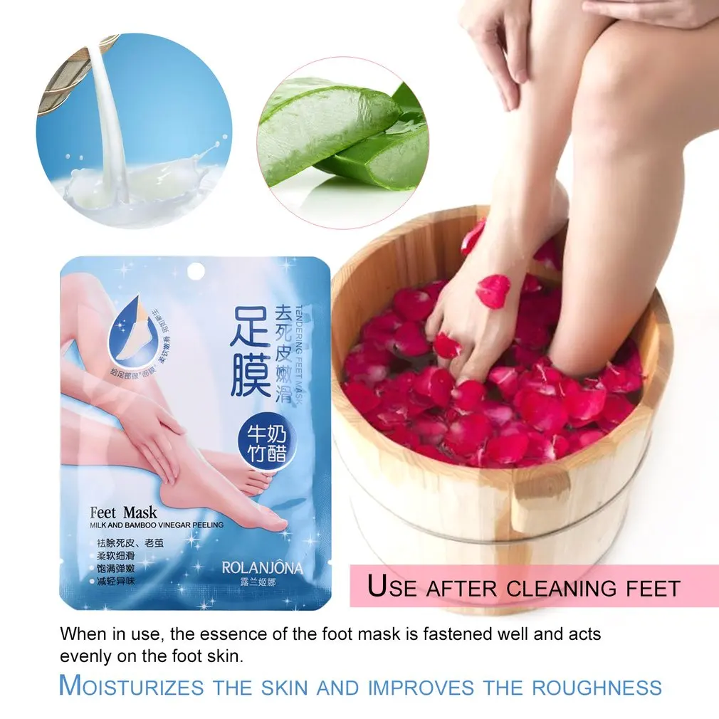 Примечание: маска для ног в первую очередь имеет особенности: смягчает кожу, смягчает кожу, питает кожу, улучшает трещины ног, грубая, уменьшает запах ног, сохраняет чистоту и комфорт. Он мягкий в использовании. Для впитывания эссенции ступни 45 минут, а затем отшелушивания, пожалуйста, поймите!