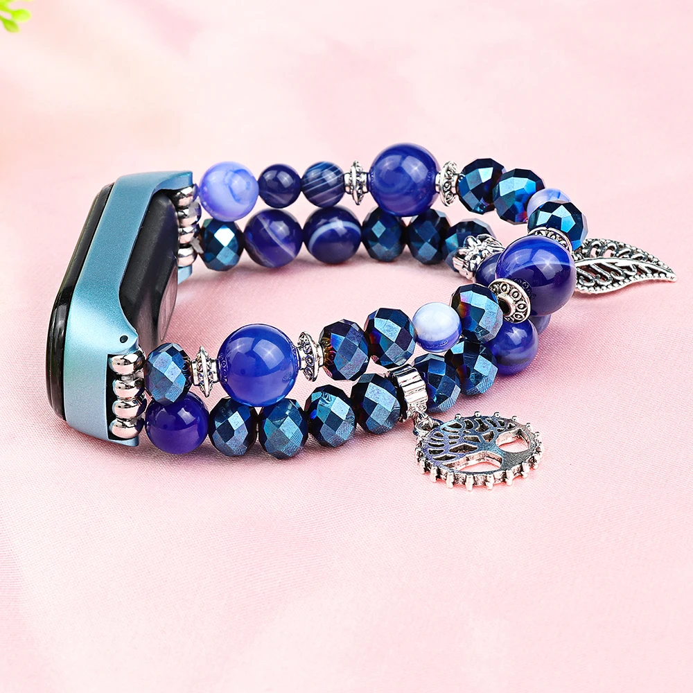 Синий ремешок для часов Mi 6, браслет для Xiaomi Mi Band 6 5 4 3, сменные ремешки, ремешок из бусин, аксессуары для браслета, стильная женщина