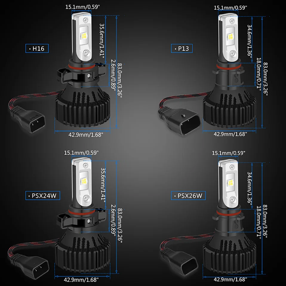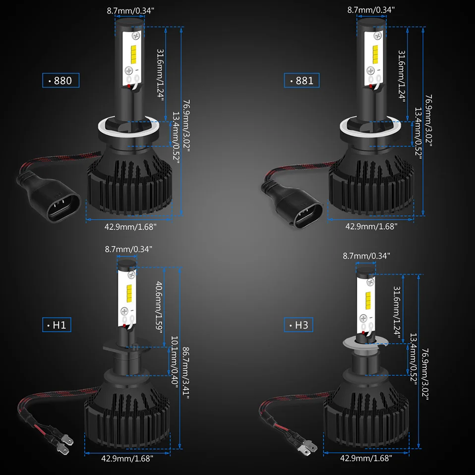 Автомобильный головной светильник H7 H4 Hi/короче спереди и длиннее сзади) пучок привели 880 881 H11 9004 9007 9005 H10 9012 H1 H16 P13W SX24W PSX26W 16000Lm 6500K Led противотуманная фара светильник лампочка