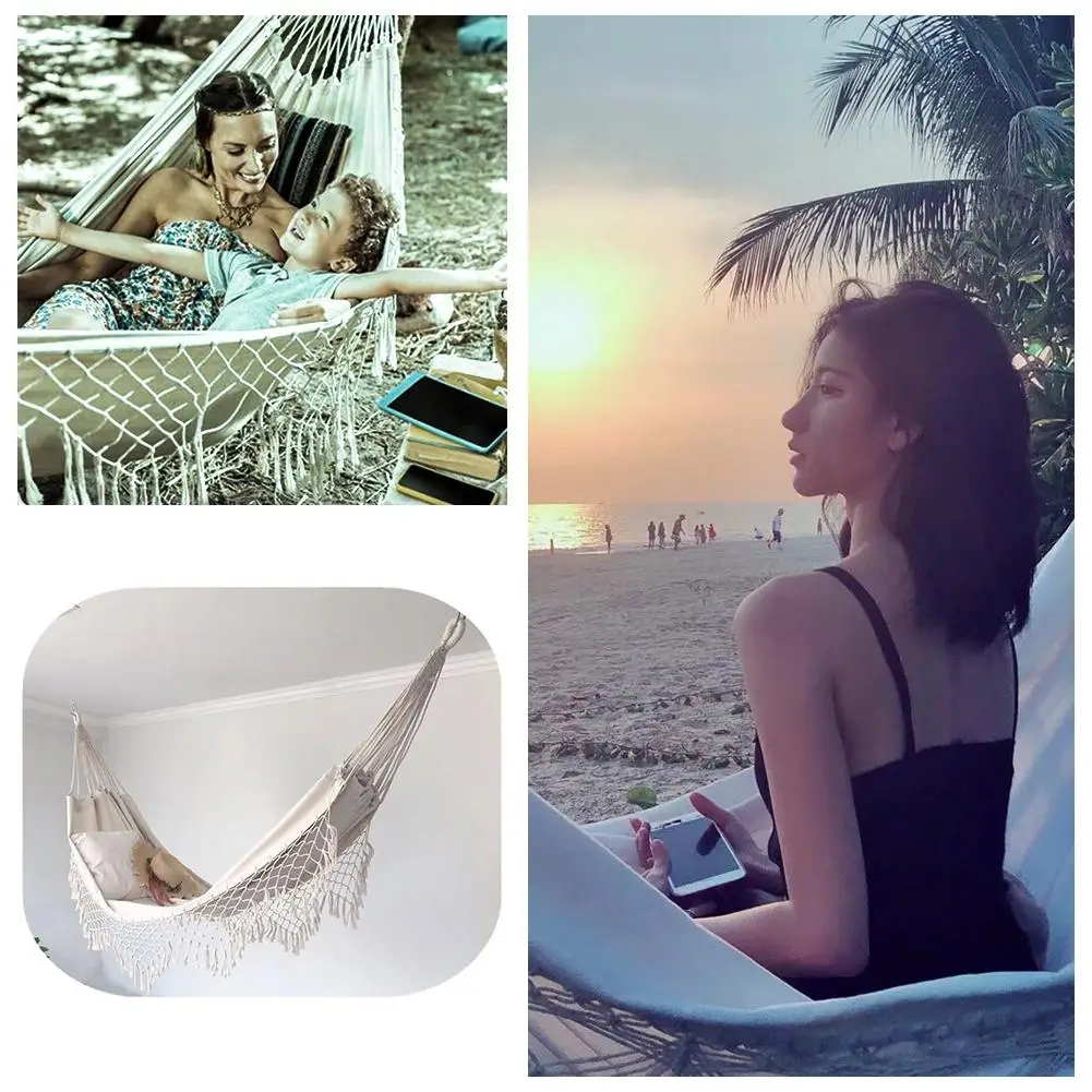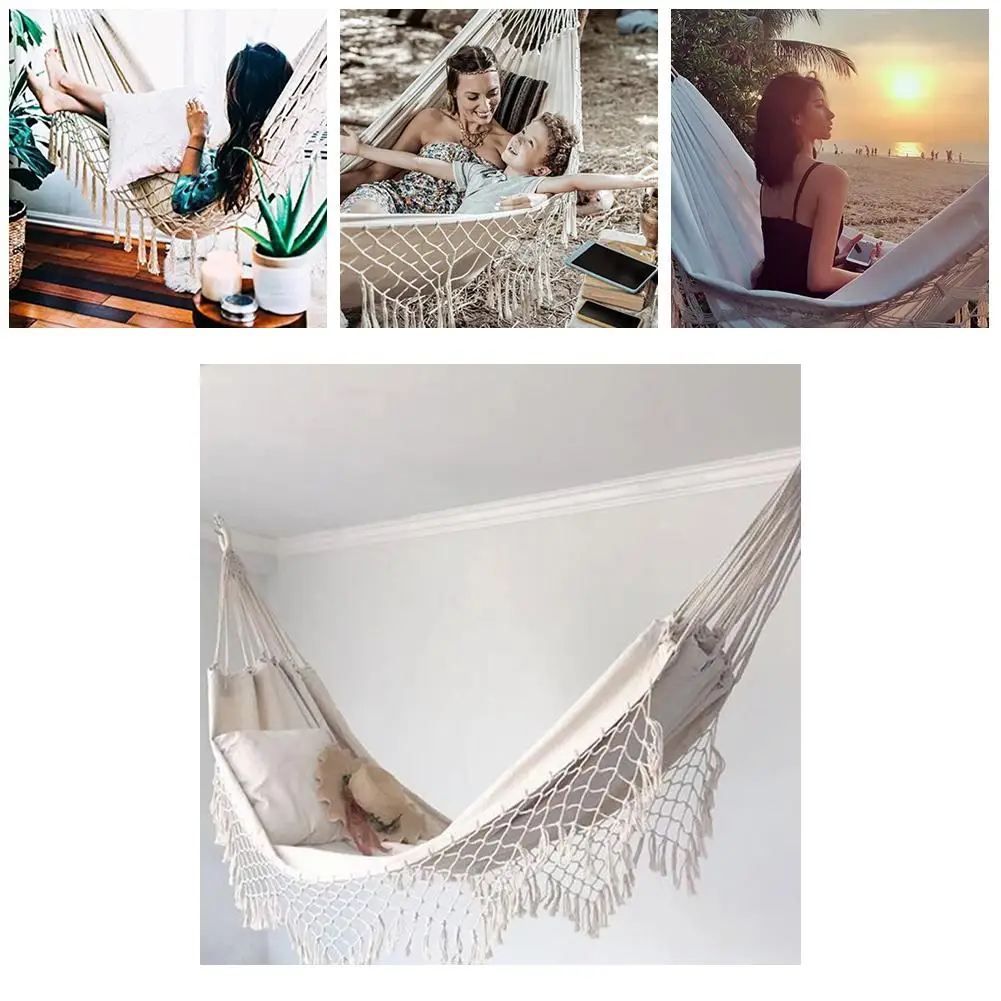 Гамак для 2 человек, большой бразильский гамак в стиле бохо с бахромой макраме, двухместная Роскошная гамак, сетка-качели, кресло/домашний подвесной гамак, качели, Dec