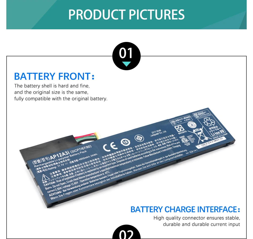 Модель: AP11D3F Напряжение: 11,1 В Емкость: 36.4wh/3280mah Количество ячеек: 6 ячеек Цвет: черный Совместимая модель ноутбука: Для планшета Acer Iconia W700 Для Acer Aspire M3 Series Для Acer Timeline Ultra M3 Series Для Acer Aspire M5 Series Для Acer Timeline Ultra M5 Series Для Acer Aspire Timeline U M3-581TG-72634G25Mnkk Для Acer Aspire Timeline U M5-481TG-6814 (M5-481) (M5-581) Замените номер детали: AP12A3i AP12A4 3ICP7/67/90