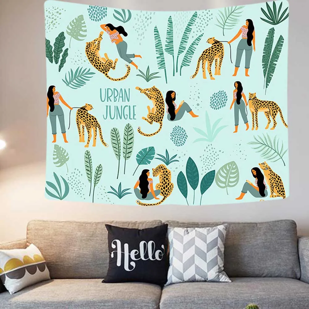 Тропический настенный гобелен с зелеными листьями, домашний декор, розовая скатерть с надписью Love, покрывало, ковер