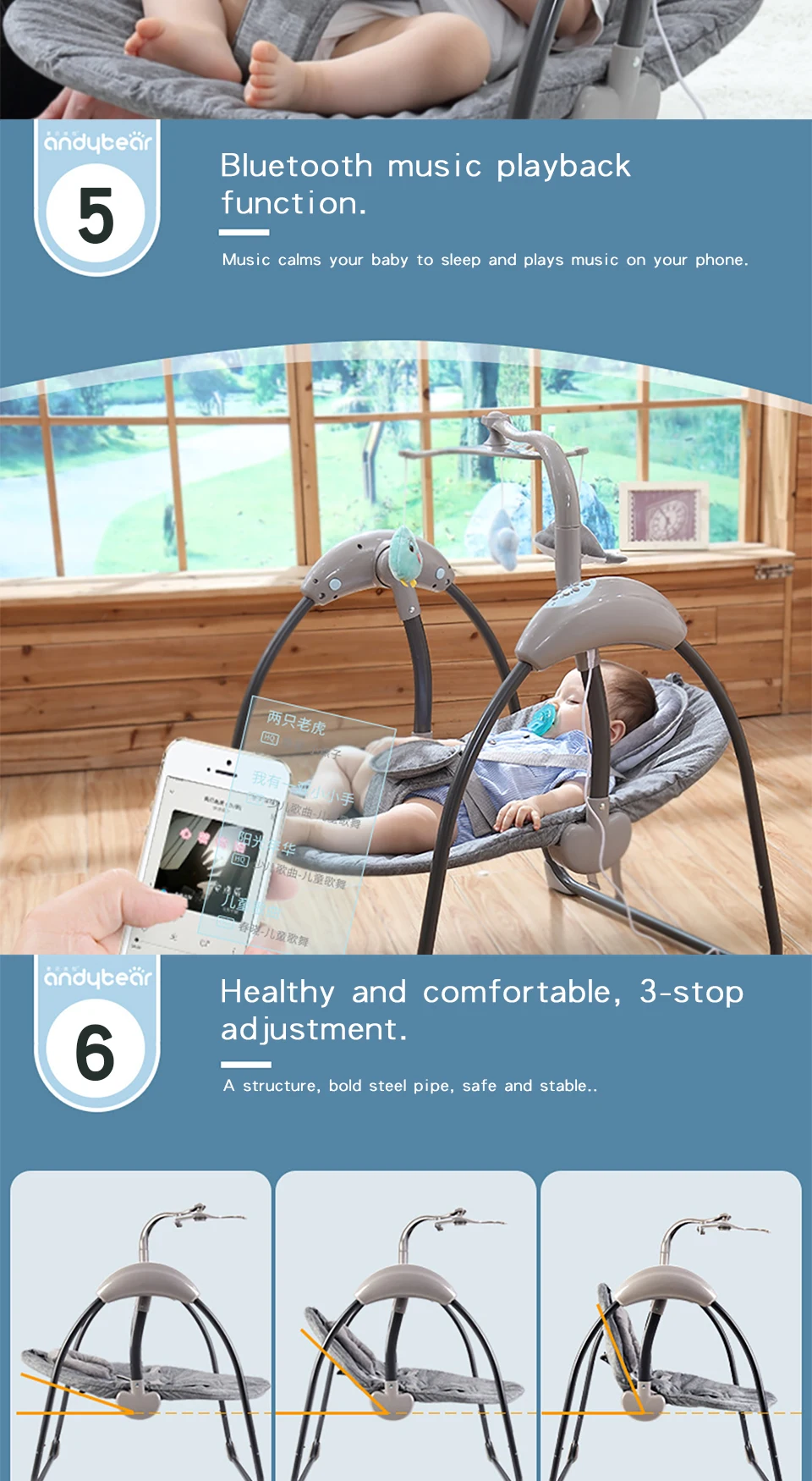 Детская электрическая колыбель, детское кресло-качалка, для новорожденных, Спящая качели, батут, люлька с дистанционным управлением, Bluetooth музыкальный плеер